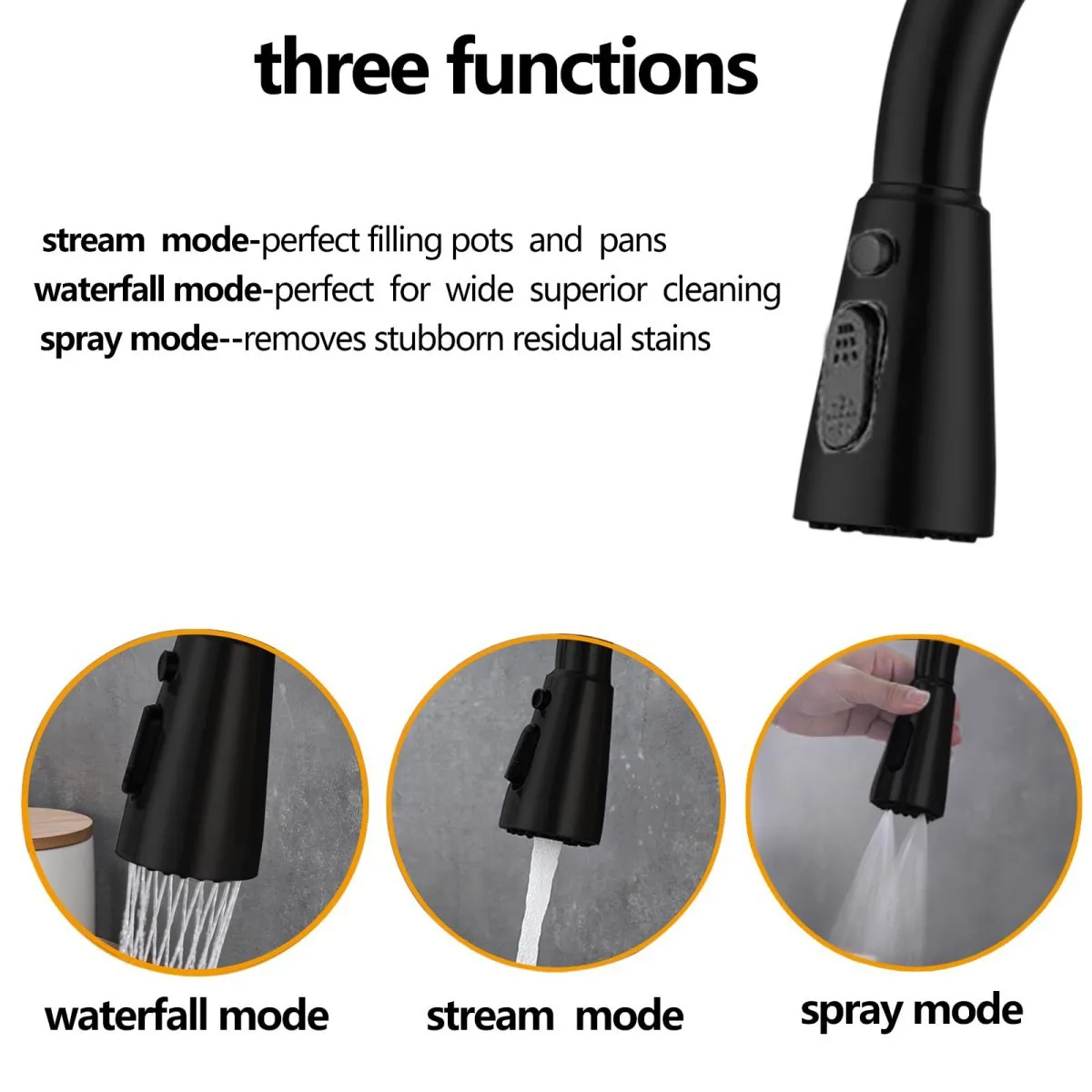 Robinets de cuisine avec buses extractibles, 360 ° Robinets mitigeurs d’évier de cuisine rotatifs et robinets mélangeurs de cuisine avec 3 modèles de pulvérisation
