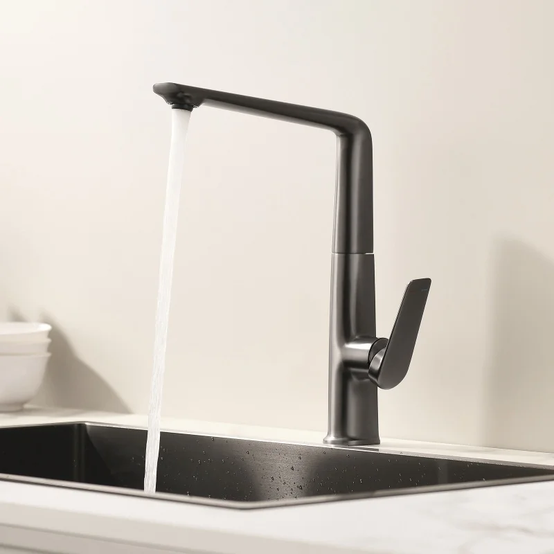Robinets de cuisine extractibles en or brossé, robinet d’évier en laiton gris, robinet d’évier noir, mitigeur à bec rotatif, grue d’eau chaude et froide
