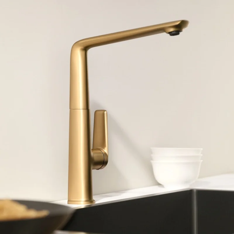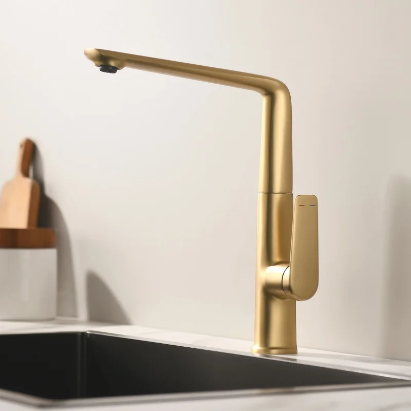 "Ce robinet de cuisine est tout simplement fantastique ! J'adore son design épuré et son fini doré brossé qui apporte une touche d'élégance à ma cuisine. La qualité de la construction est excellente et il est très facile à utiliser avec sa douchette extractible. Le seul bémol est que l'installation a été un peu complexe, mais le résultat en vaut vraiment la peine. Je le recommande sans hésiter !"