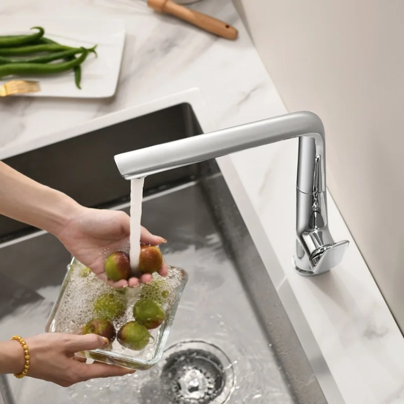 Optez pour un mitigeur à bec orientable. Hauteur : 30-40 cm. Bec pivotant 120° minimum.