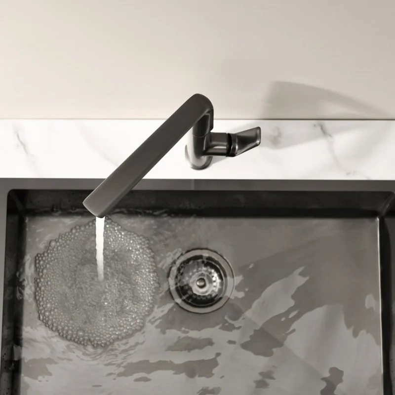 Robinets de cuisine extractibles en or brossé, robinet d’évier en laiton gris, robinet d’évier noir, mélangeur à bec rotatif, grue d’eau chaude et froide