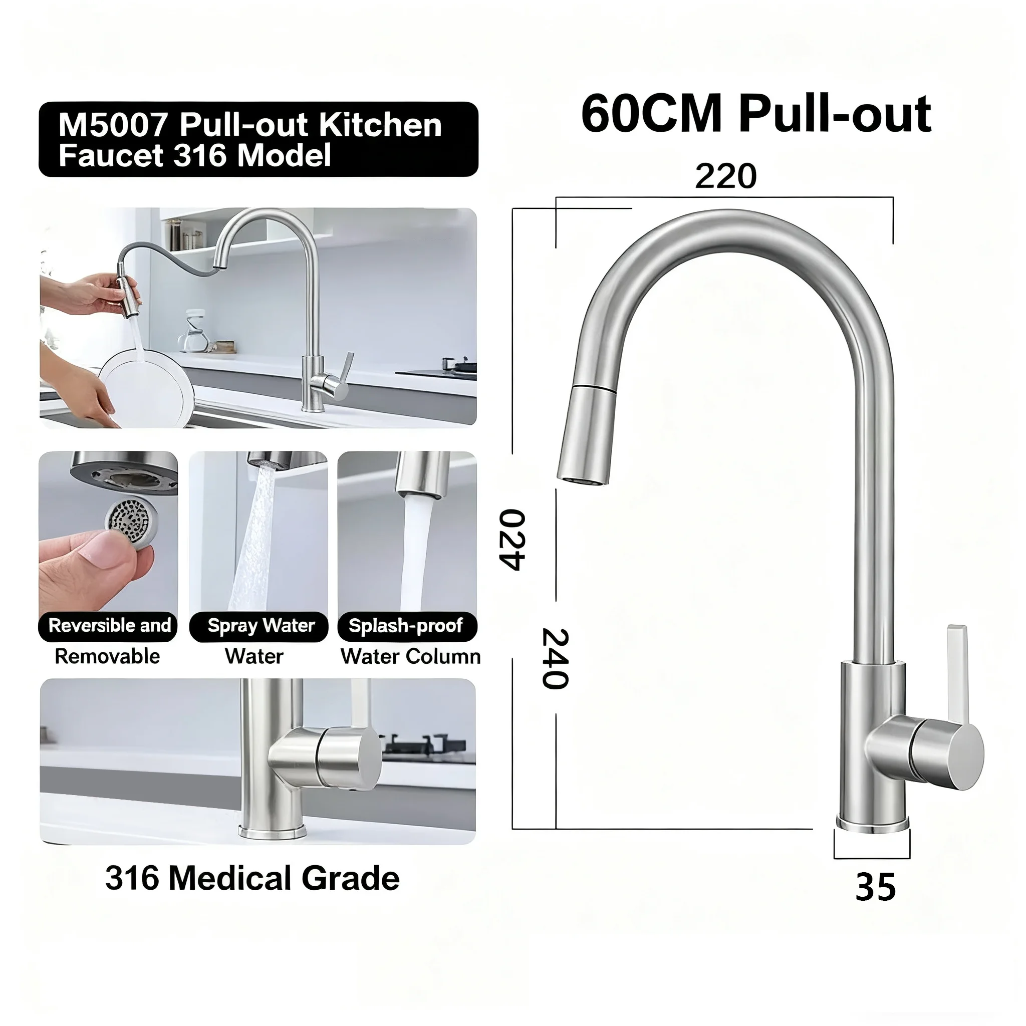 Nom : Robinet d’évier de cuisine en acier inoxydable 316 Sus