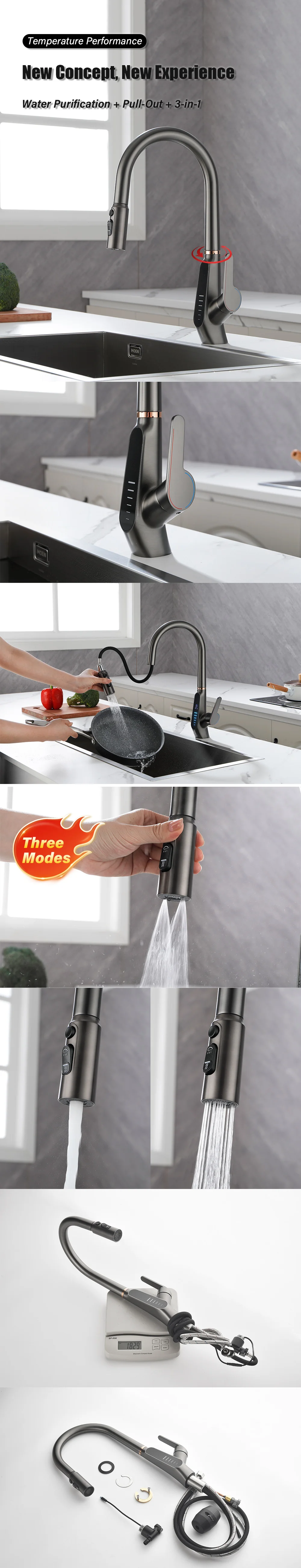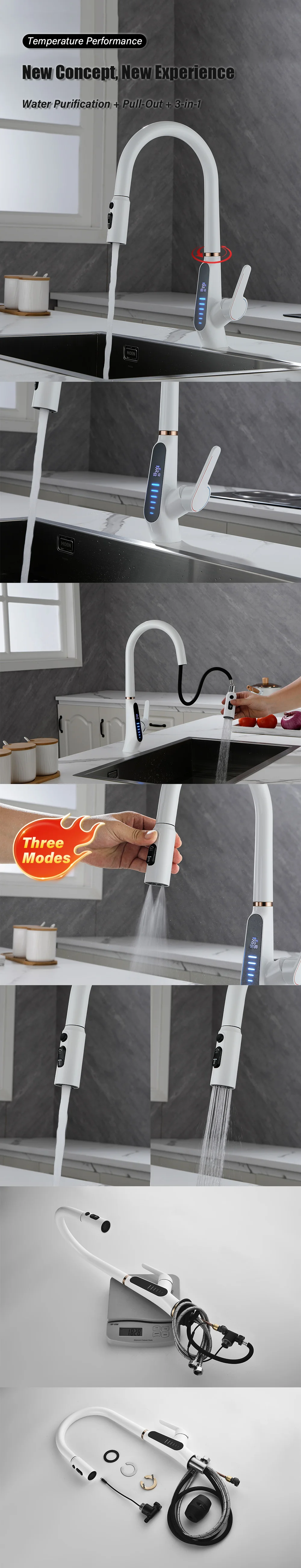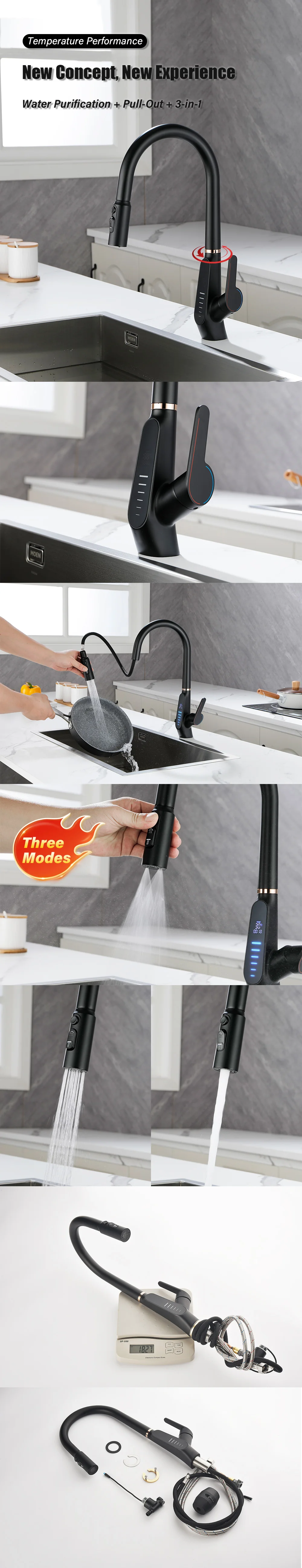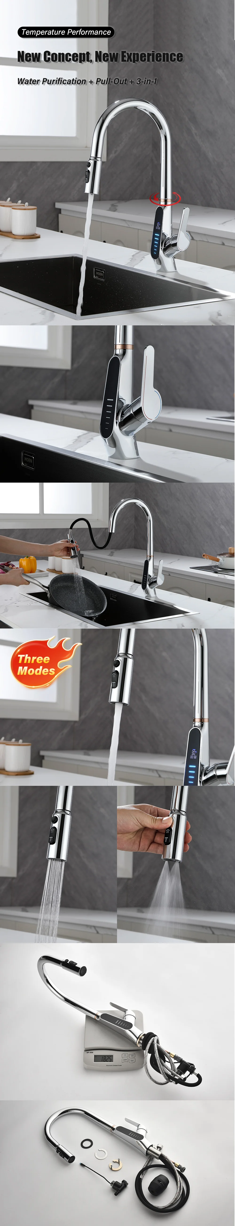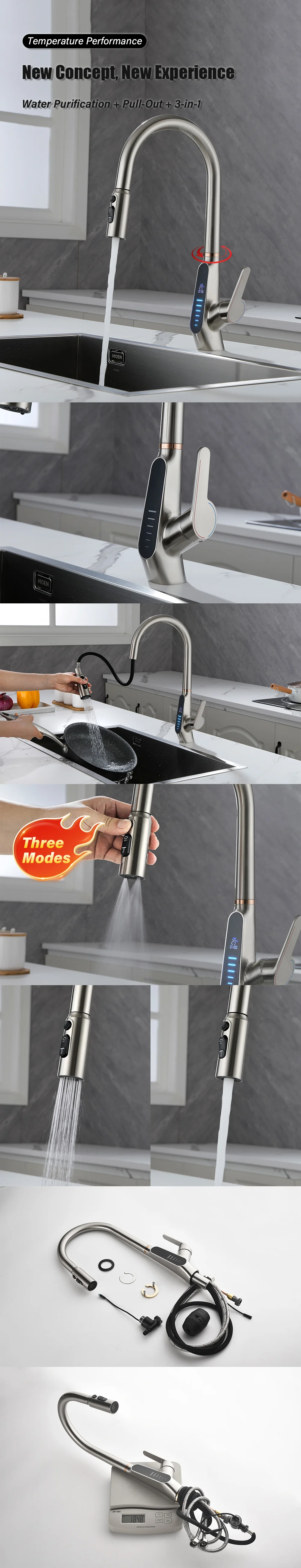 Nom : Robinet de cuisine extractible à affichage numérique LED