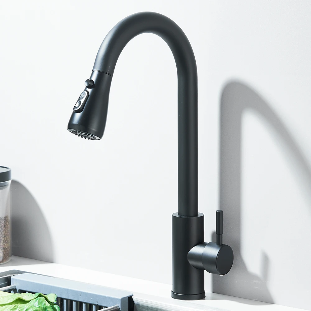 Robinets de cuisine noirs à poignée unique, robinet de cuisine extractible, poignée monotrou pivotante à 360 degrés, mélangeur d’eau chaude et froide, pulvérisateurRobinets de cuisine noirs à poignée unique, robinet de cuisine extractible, poignée monotrou pivotante à 360 degrés, mélangeur d’eau chaude et froide, pulvérisateur