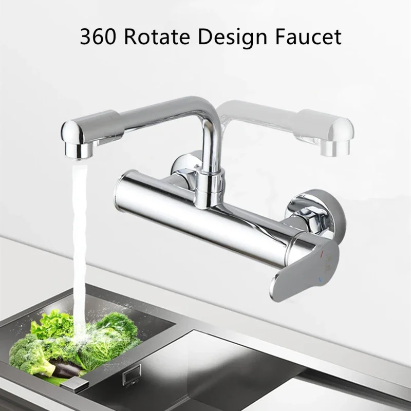 OBTENEZ LE LOOK✨: Robinets de cuisine noirs en laiton rotatif à 360 degrés, double trou mural, robinet de salle de bains argenté, eau froide et chaude, grue pliante, mitigeur d’évier