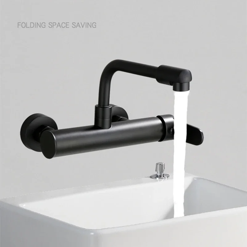OBTENEZ LE LOOK ✨ : Robinets de cuisine noirs en laiton, robinet de salle de bains mural à double trou rotatif à 360 degrés, robinet mitigeur d’évier de grue pliante d’eau froide et chaude