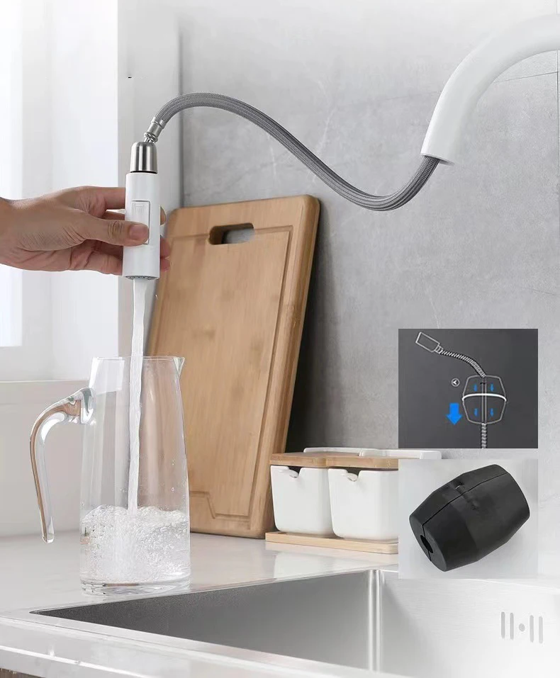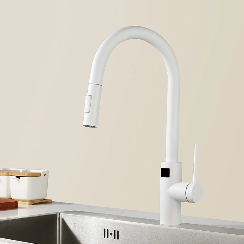 Robinets de cuisine tactiles numériques intelligents avec mitigeur d'évier de cuisine chaud et froid extractible, robinet de cuisine numérique tactile à capteur blanc