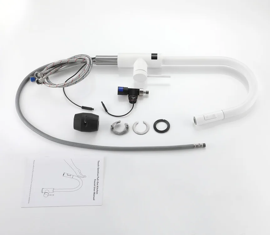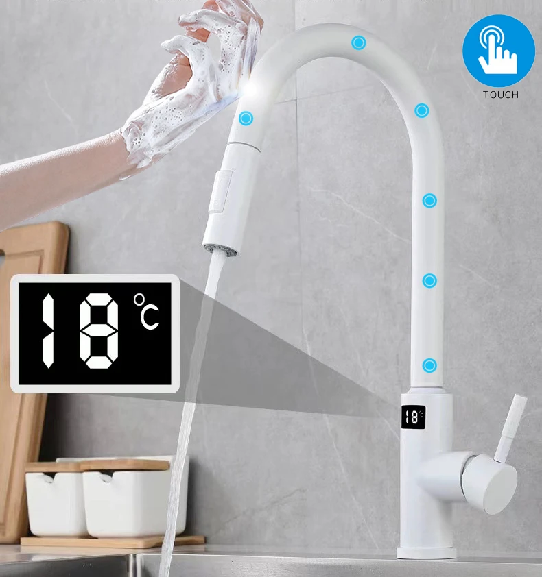 Robinets de cuisine tactiles numériques intelligents avec mitigeur d’évier de cuisine chaud et froid extractible, robinet de cuisine numérique tactile à capteur blanc