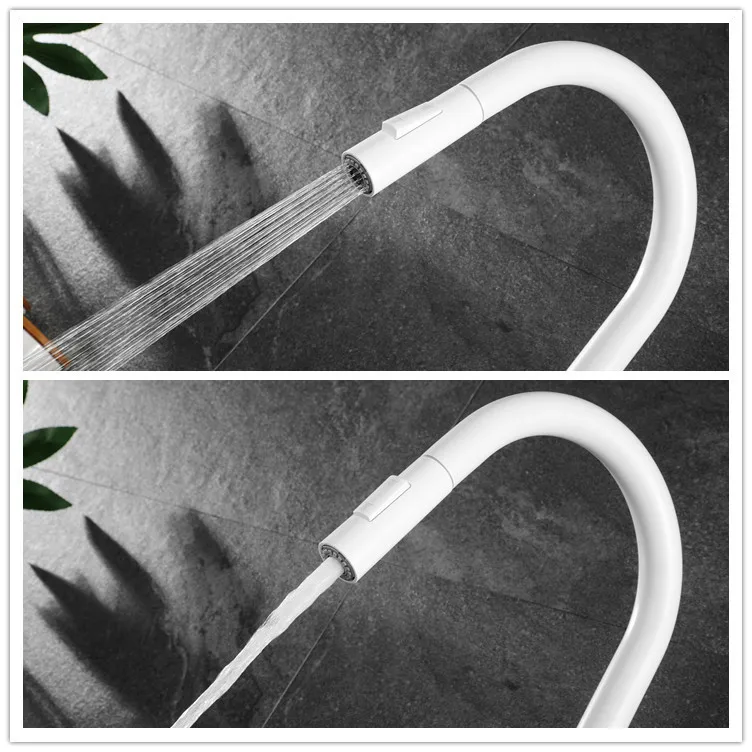 Robinet déroulant Les robinets d’évier Kithchen sont livrés avec un tuyau flexible qui atteindra jusqu’à 20 pouces et le robinet d’évier lui-même tourne à 180 degrés, vous offrant ainsi suffisamment d’espace pour nettoyer l’évier le plus grand.Le tuyau se rétracte en douceur d’un poids.