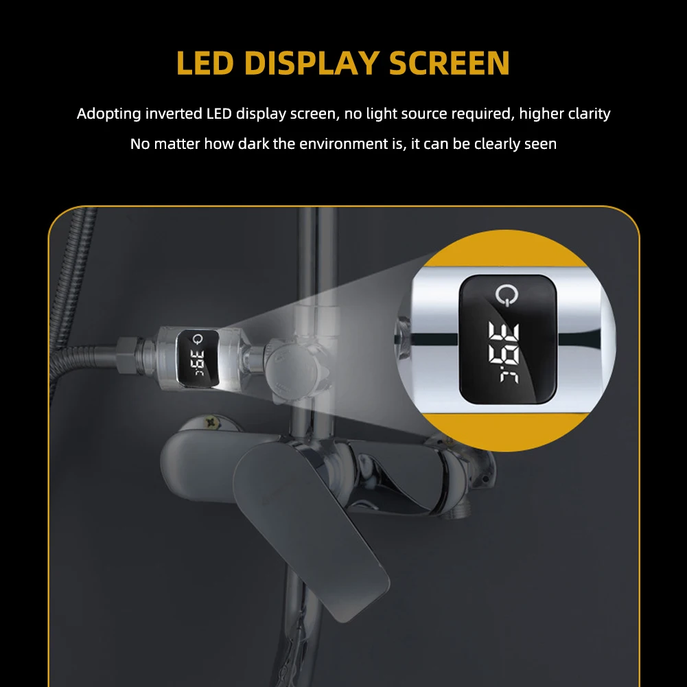1. Affichage de la température en temps réel : le pyromètre de douche numérique LED affiche avec précision la température de l’eau en temps réel, assurer que vous ne vous inquiétez jamais d’être trop chaud ou trop froid pour vous-même.Cela fournit la paix de l’esprit et garantit une expérience de douche confortable.