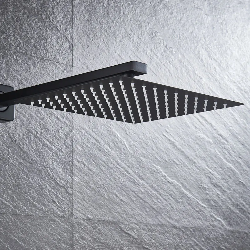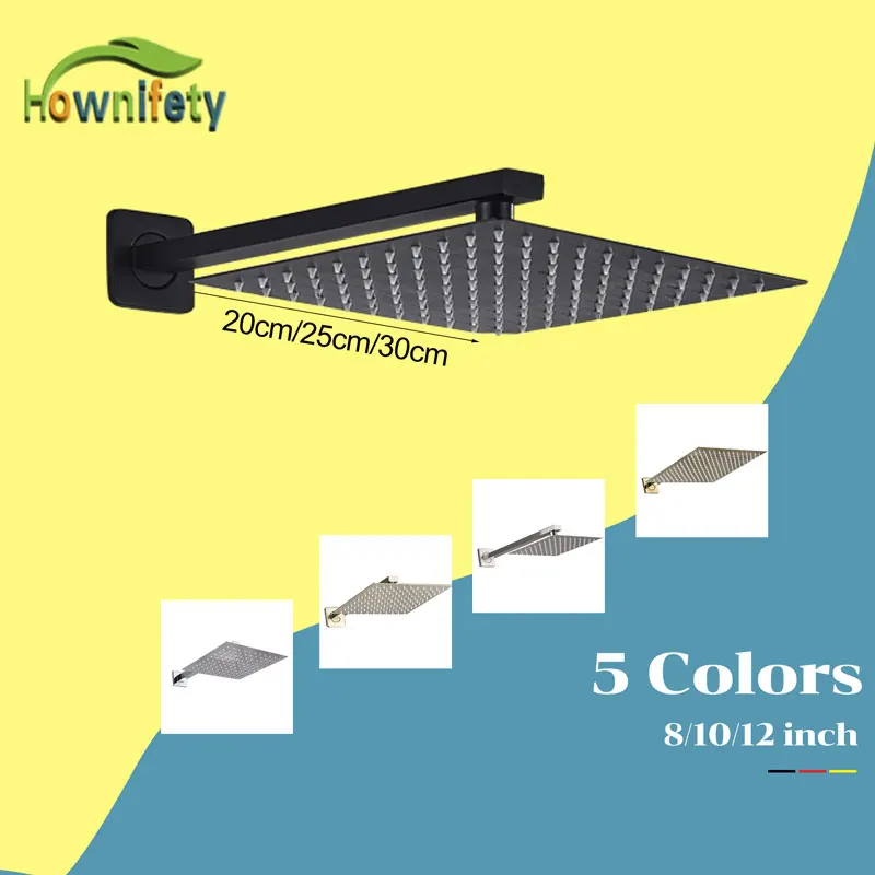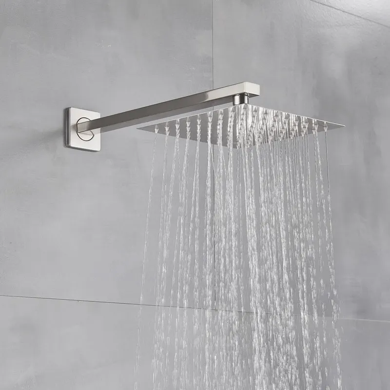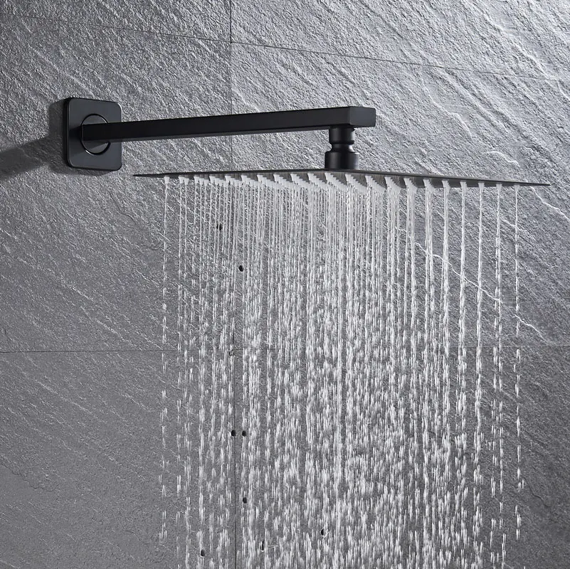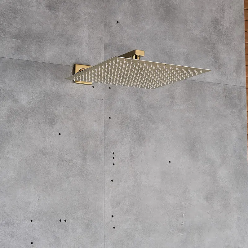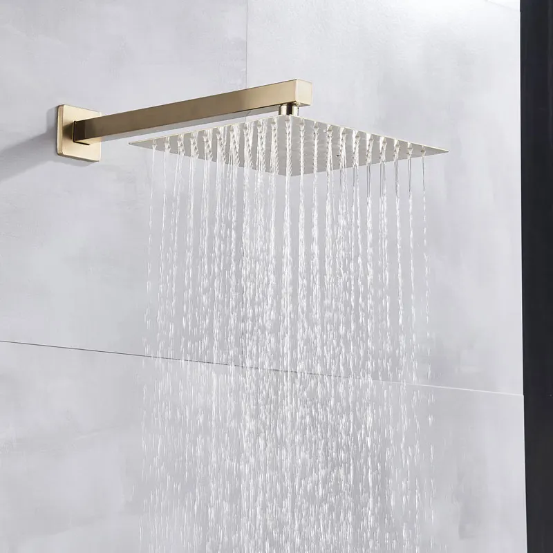Robinets de douche en or brossé noir 8/10/12 « pomme de douche ultrafin avec support mural bras de douche accessoires de douche de salle de bain