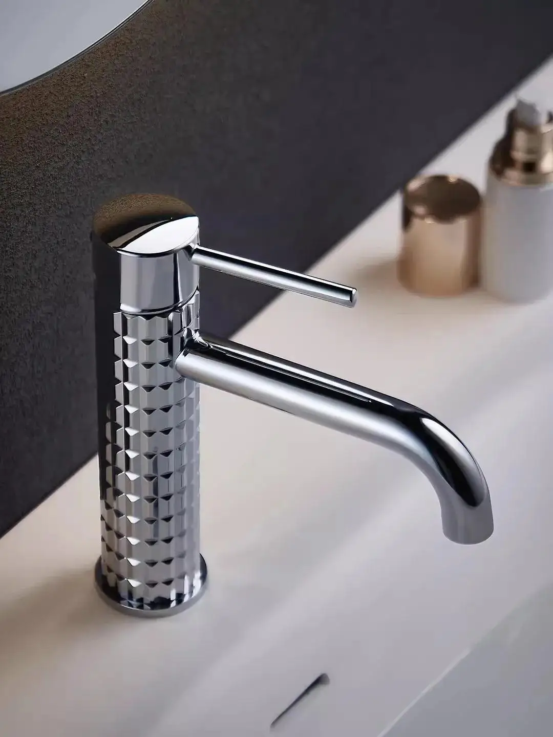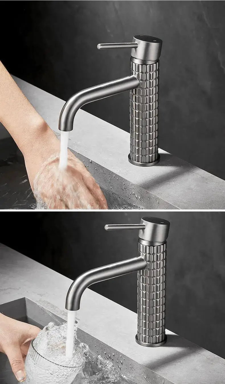 Robinet de lavabo artistique mélangeur d’évier à levier unique en laiton chaud et froid