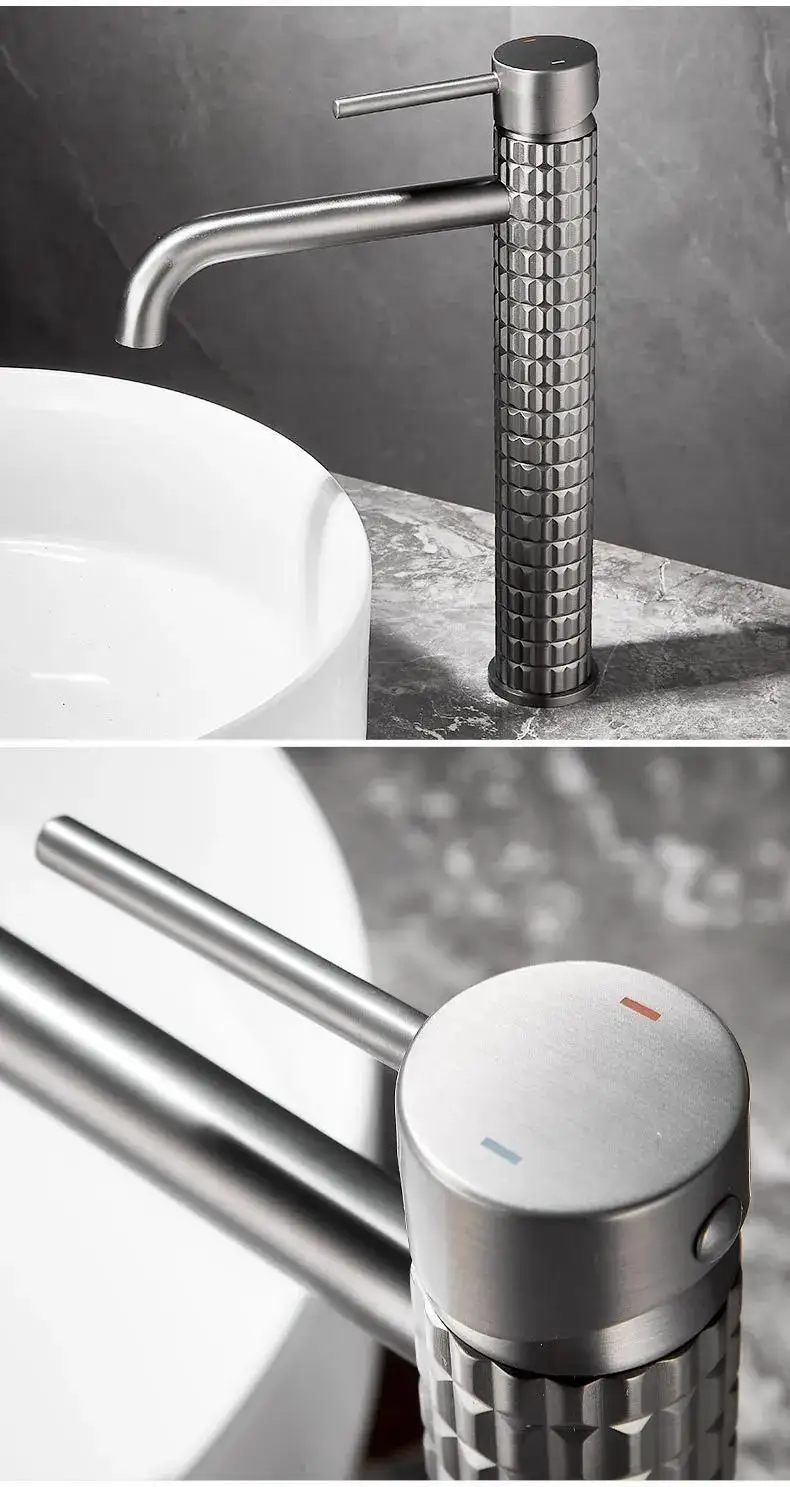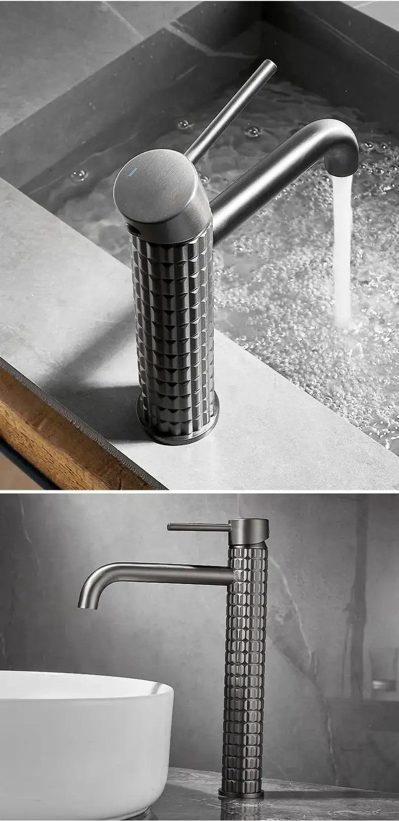 Robinet de lavabo artistique, mitigeur d’évier à levier unique en laiton chaud et froid