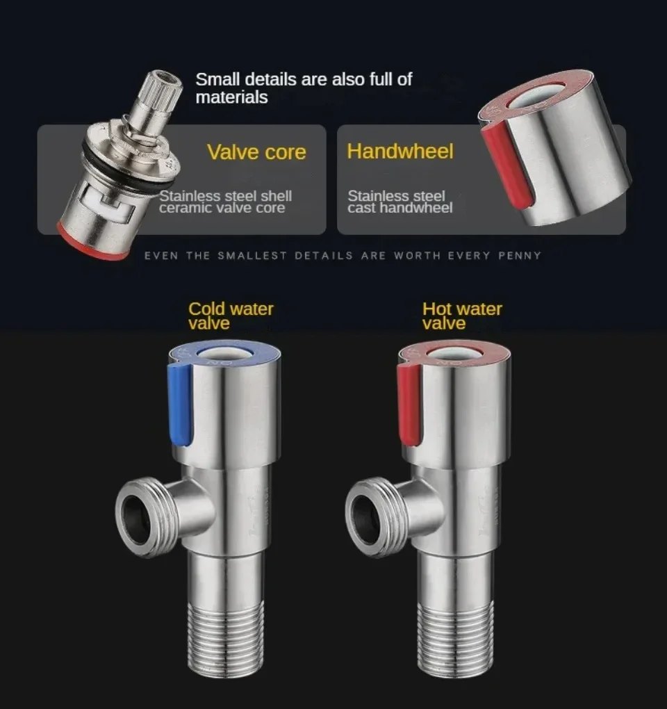 Fabriqué en acier inoxydable SUS304. Vanne de haute qualité, anti-fissures, anti-fuite, anti-âge, antirouille et utilisation durable. Débit d’eau à flux fluide, sans goutte à goutte.