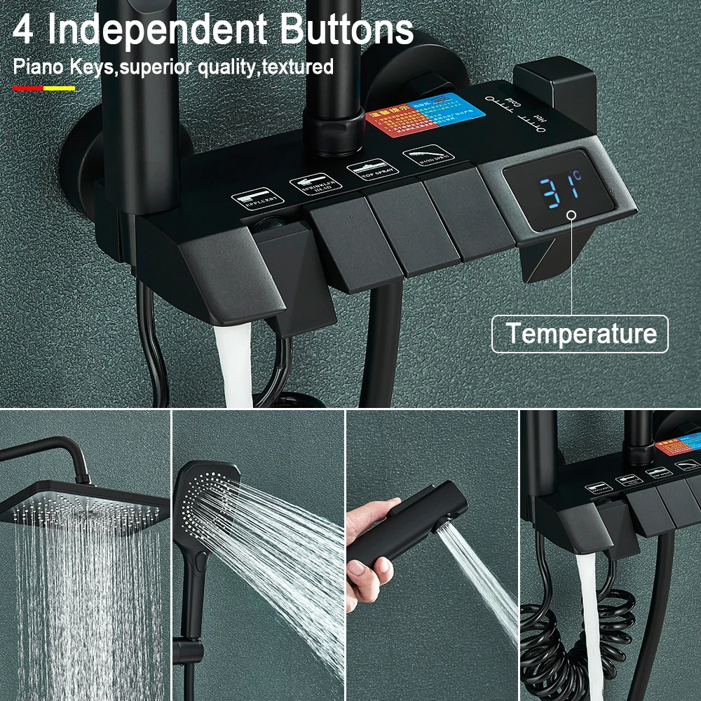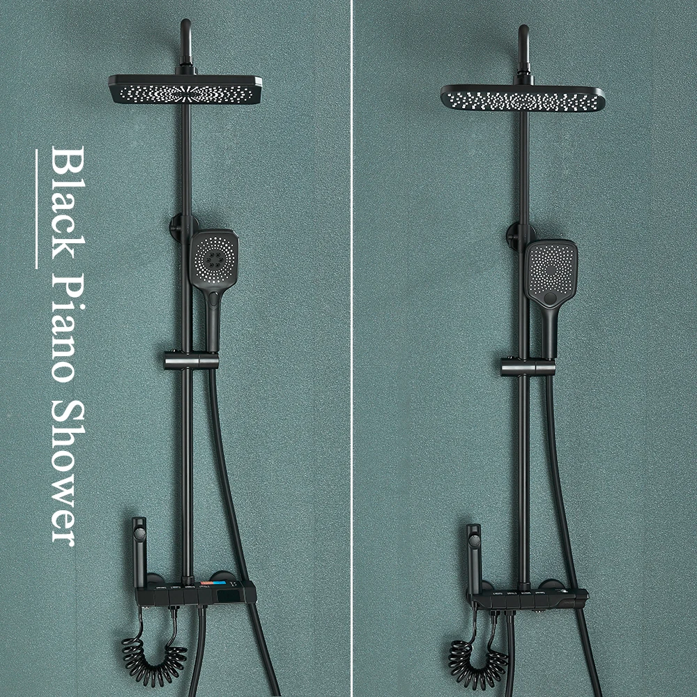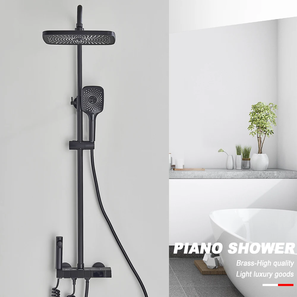 Robinets de salle de bain en laiton, ensemble de douche numérique, Piano noir, robinets de salle de bains intelligents, cascade chaude et froide, système de douche blanche