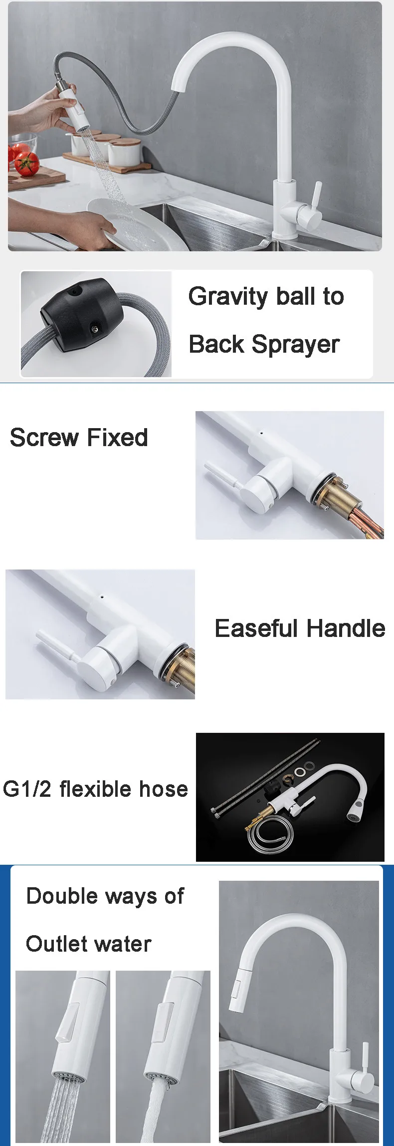 [PULL OUT SPRAYER]: Pulvérisateur et buse rotatifs à 360 degrés, buse rotative à arc élevé à 360 degrés peut fournir un lavage complet pour votre évier de cuisine, un robinet à poignée unique peut contrôler la température et le débit plus pratique. Le robinet d’évier utilitaire facilite diverses tâches d’espace dans la cuisine.