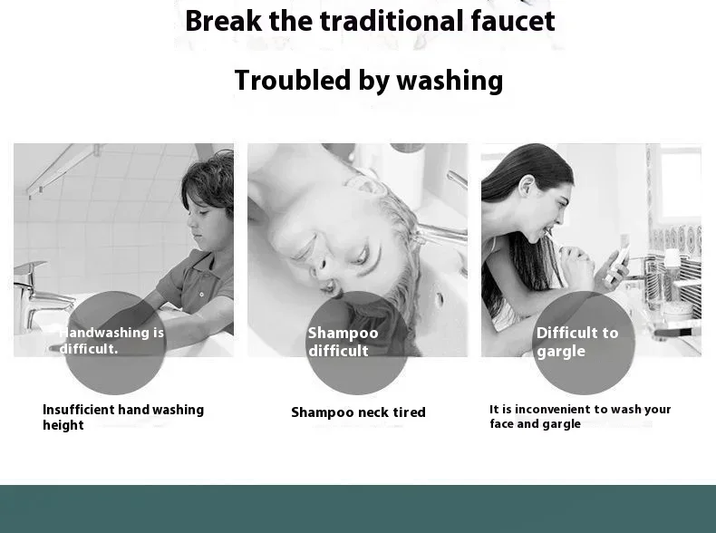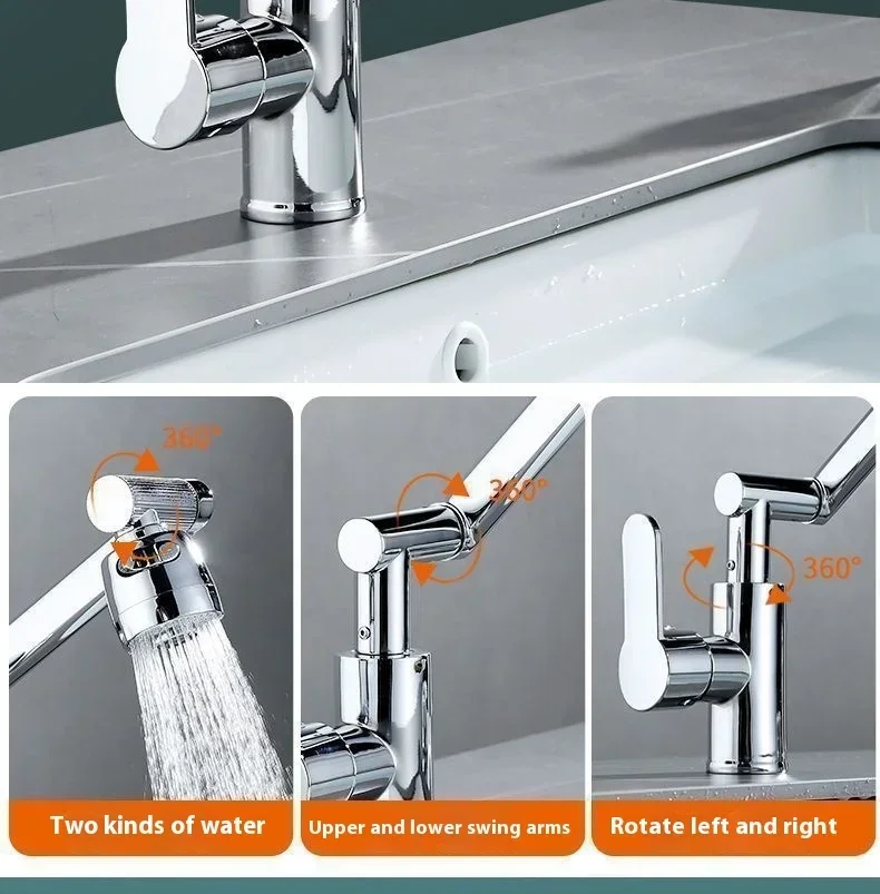 ✔️ 360° Rotation multidirectionnelle – Bec pivotant vertical/horizontal réglable pour un lavage flexible du visage, un rinçage des cheveux ou des soins bucco-dentaires.