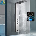 Panneau mitigeur de douche thermostatique en nickel brossé tour de colonne de douche cascade pluie avec robinet de douche à jet massant
