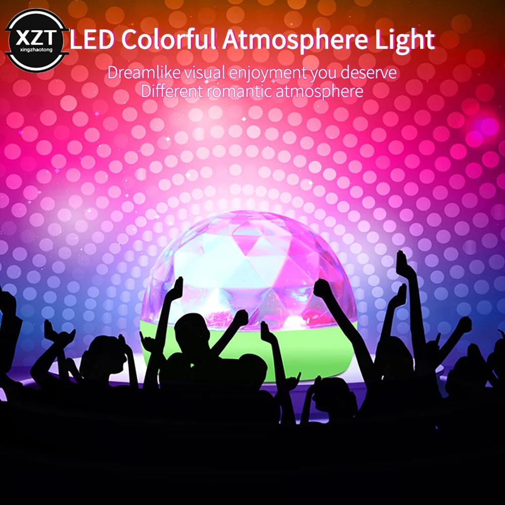 Mini USB LED lumière d’ambiance de voiture RGB musique contrôle du son DJ Disco boule lampe fête à la maison USB vers Apple Android téléphone Disco lumière