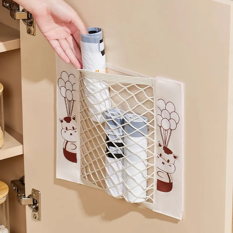 Sac de rangement de cuisine, sac poubelle, artefact de rangement sans poinçonnage, rangement mural domestique, sac suspendu, sac de rangement en plastique, sac en filet Velcro