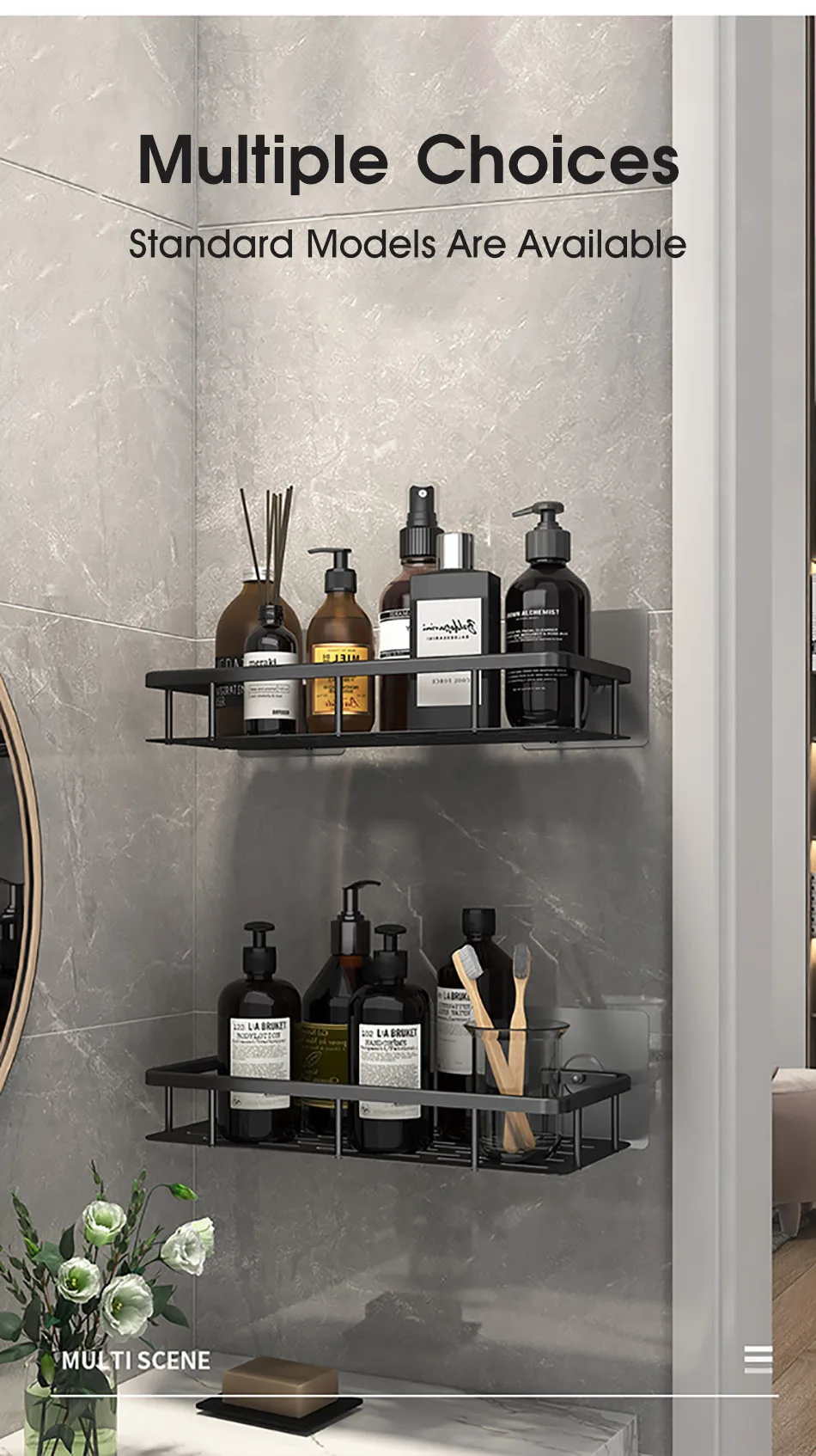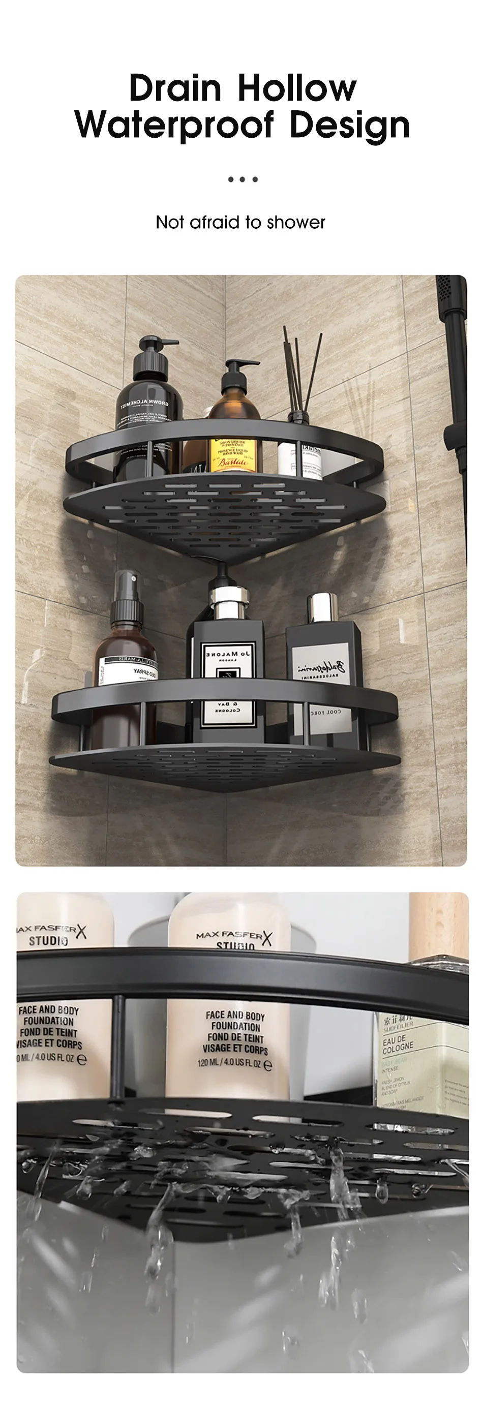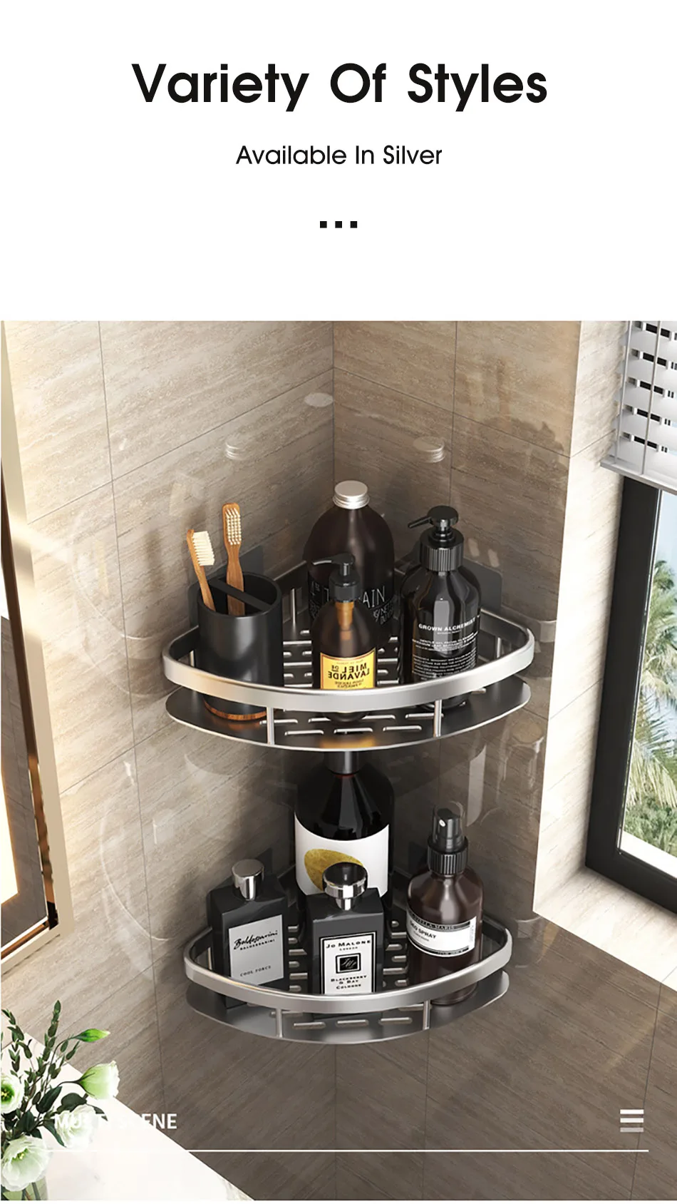 • Étagère d’angle:Utilise l’espace inutilisé dans votre coin salle de bain et ajoute une touche d’organisation.