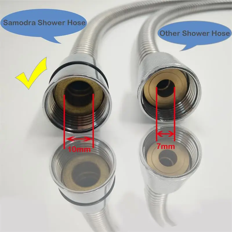 1.【Grande alésage intérieur de 10 mm】 Alésage intérieur extra élargi, élargit le passage du débit d’eau pour fournir une performance de douche à haut débit même à faible pression d’eau