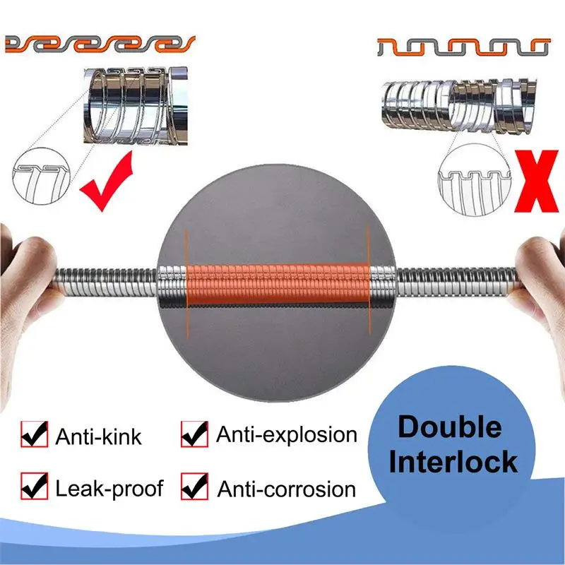 2.【Double verrouillage en acier inoxydable】 Tuyau de douche en acier inoxydable avec conception à double verrouillage, anti-explosion, étanche et anti-torsion