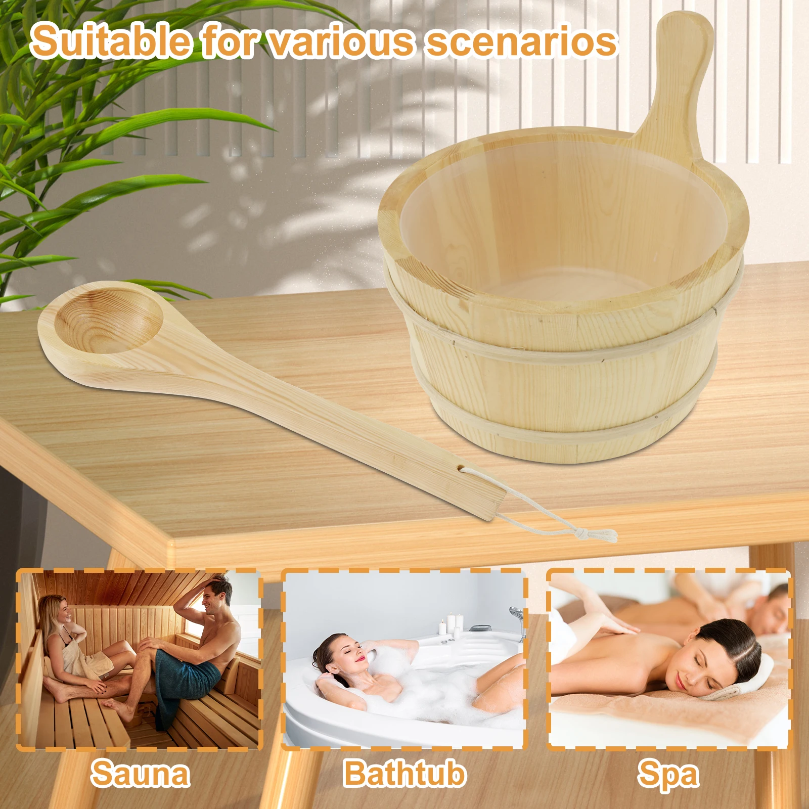 - 4L Wooden Sauna Bucket: Sauna Bucket and Ladle Set for Sauna Steam Room
