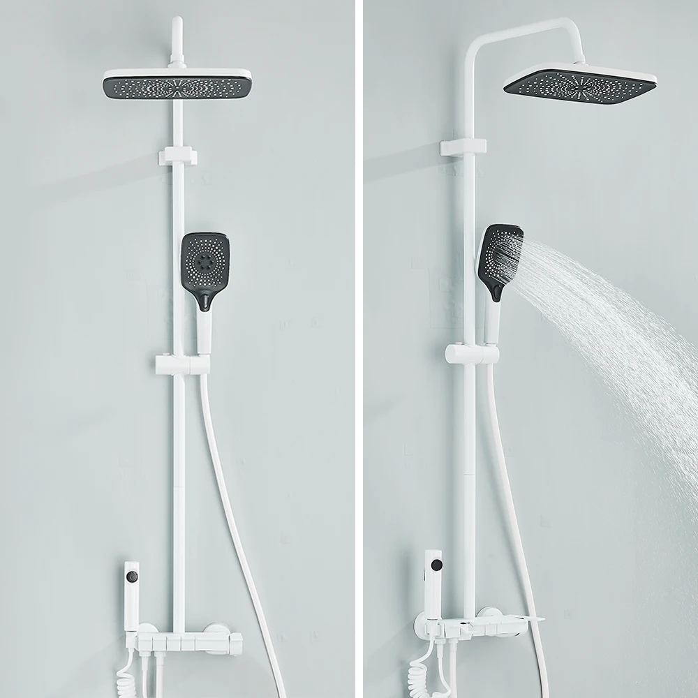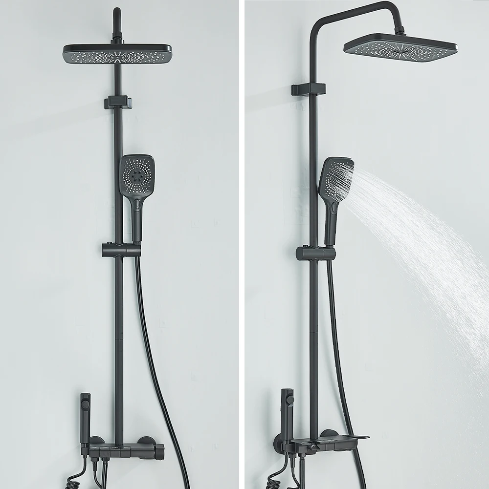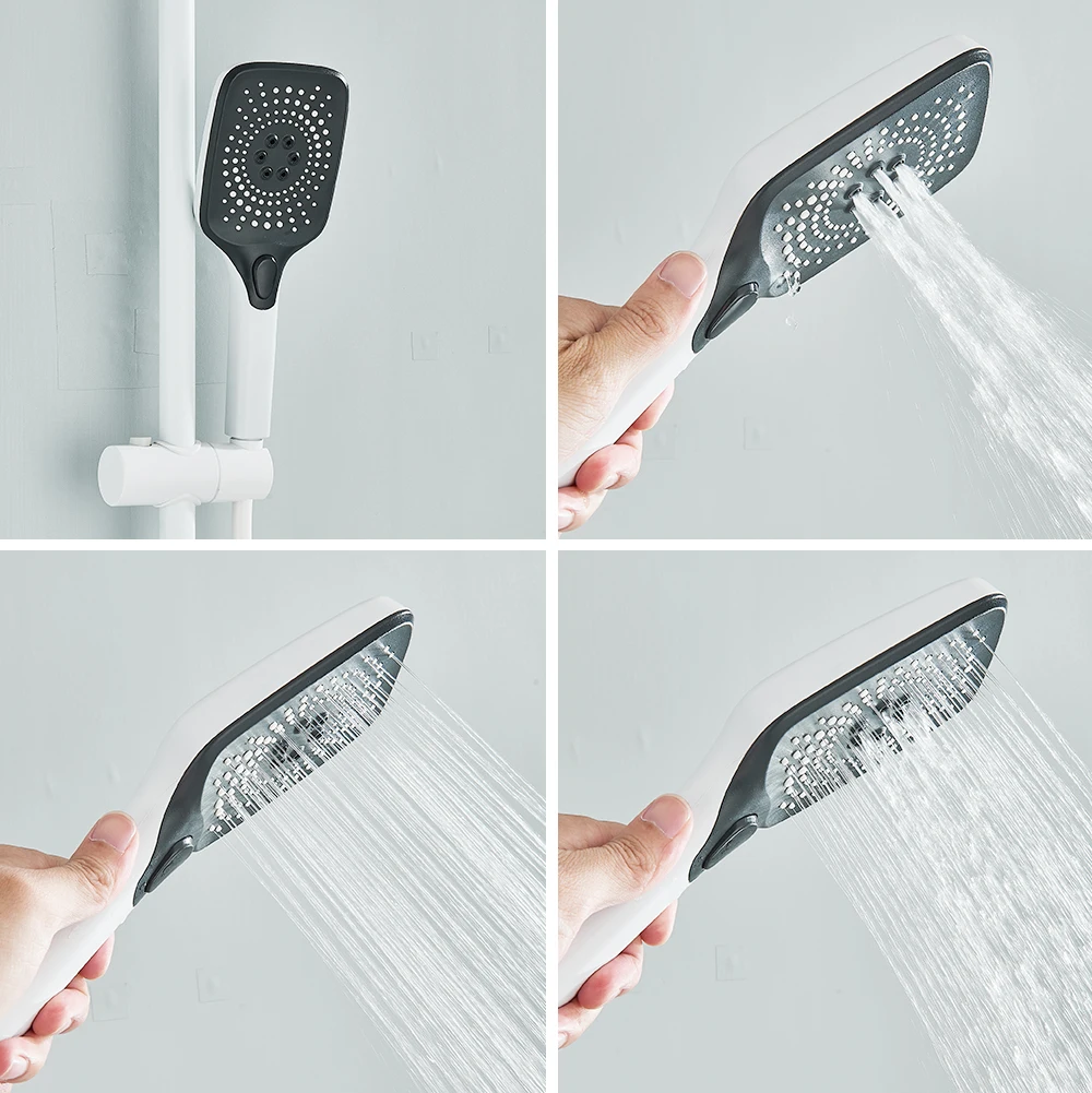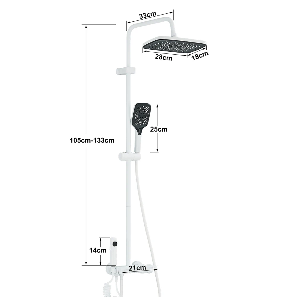 【Réglable en hauteur】La hauteur de la colonne de douche et de la douchette peut être ajustée pour répondre aux exigences de différentes hauteurs. Vous pouvez ajuster librement la tige de douche à la hauteur que vous voulez