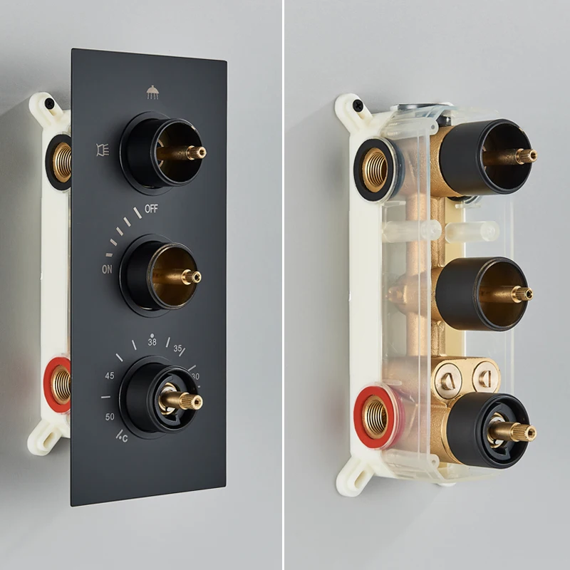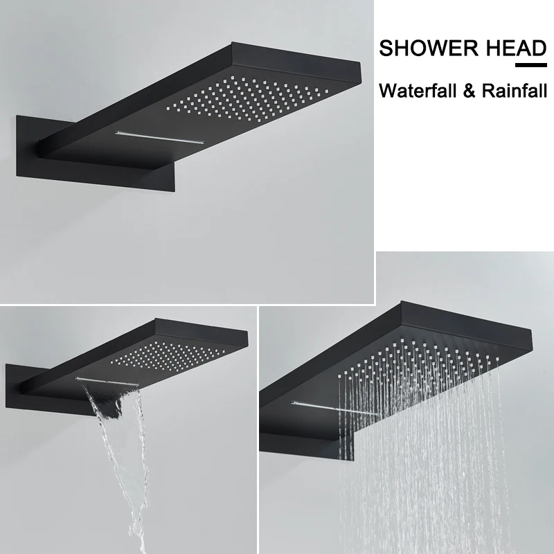 Shinesia Thermostatic Rain Waterfall Shower Faucet Set Concealed Faucet Wall Mounted Column Hot And Cold Shower System