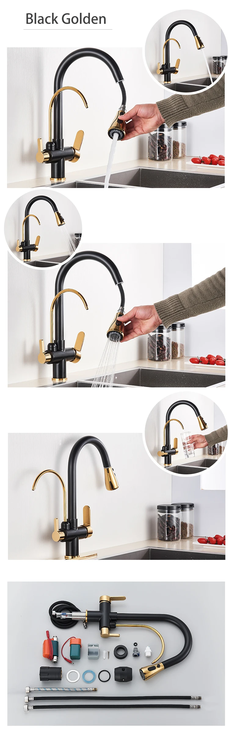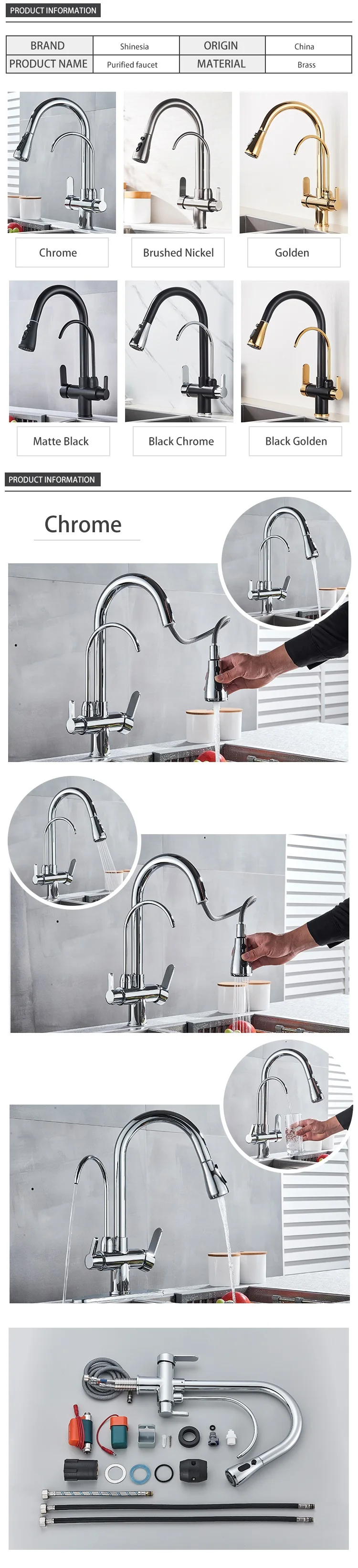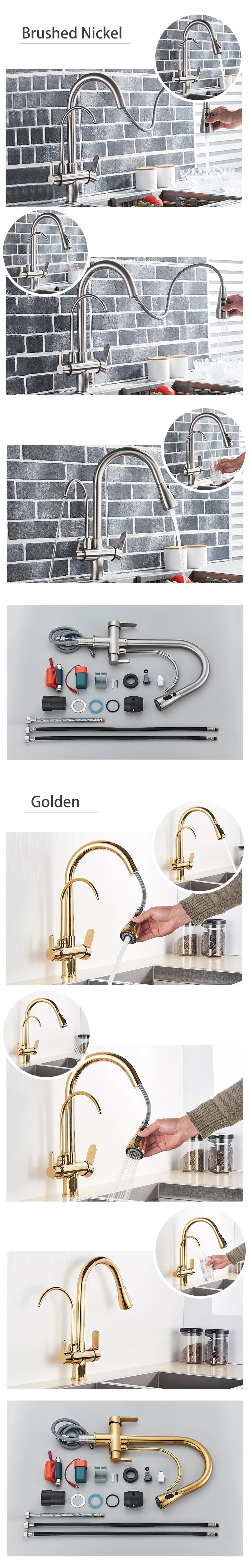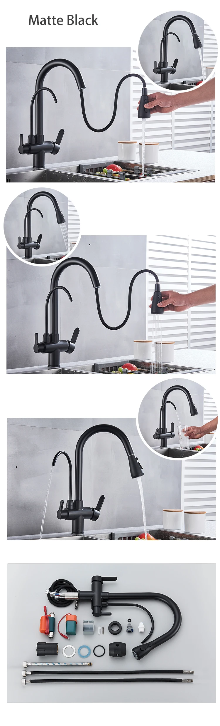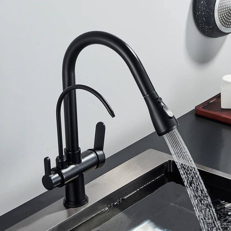 Shinesia Touch Sensor Filter Kitchen Faucet Gourmet Pull Out Pure Water Tap Dual Handle Black Kitchen Sink Mixer