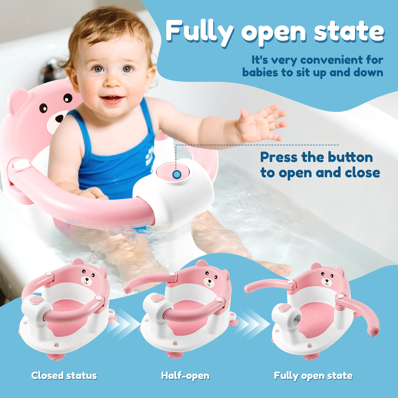 Siège de bain pour bébé, Support de baignoire pour douche pour nouveau-né, avec accoudoir pliable, antidérapant, mignon, dessin animé, Support de chaise de bain pour tout-petitsSiège de bain pour bébé, Support de baignoire pour douche pour nouveau-né, avec accoudoir pliable, antidérapant, mignon, dessin animé, Support de chaise de bain pour tout-petits