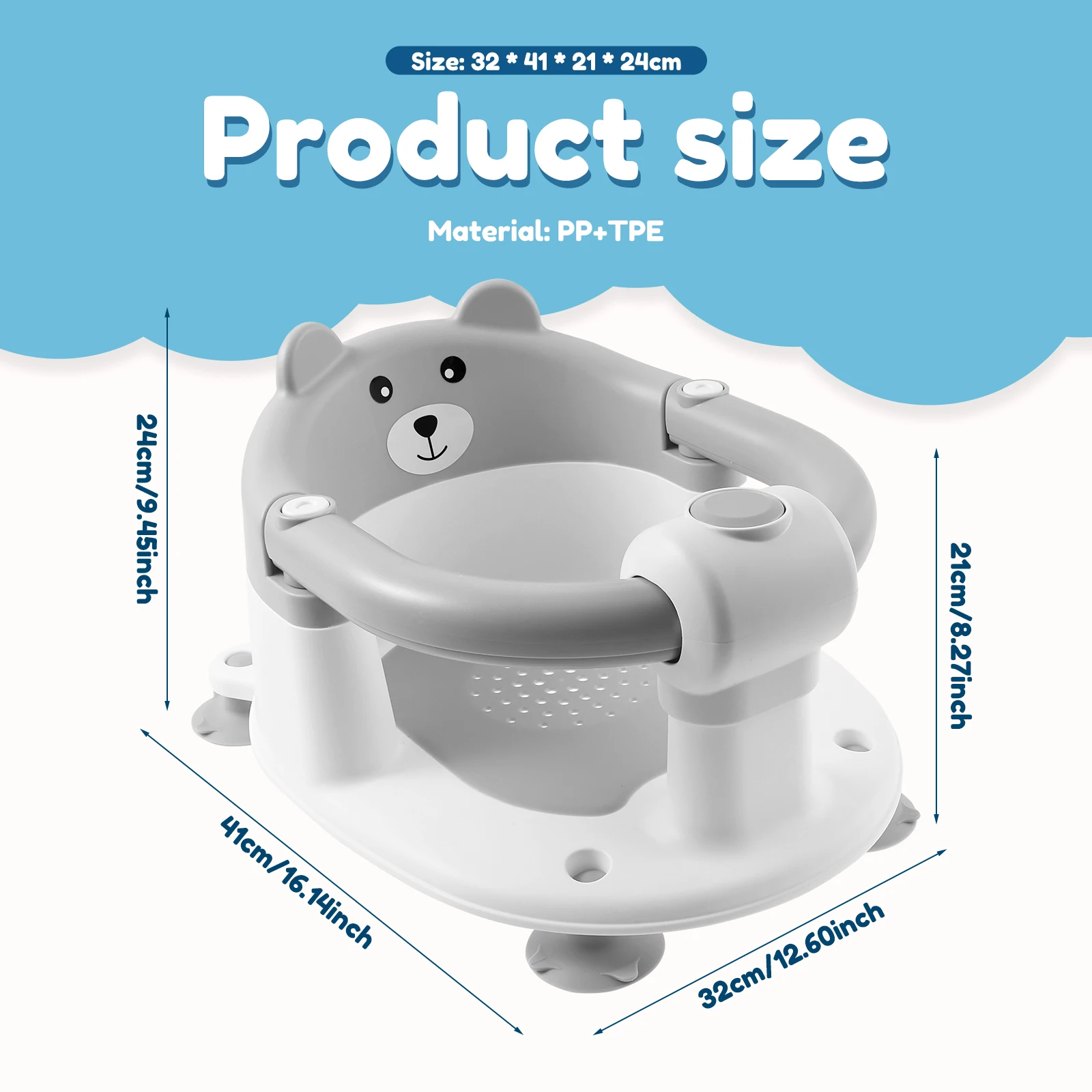 Adhesion sécurisée : La chaise de bain est équipée d’un coussin doux et respirant, offrant un confort pour le bébé.Le bas comprend quatre ventouses antidérapantes pour garantir la stabilité, le permettant d’avoir adhérent en toute sécurité pour une surface lisse et évite le glissement ou le retournement