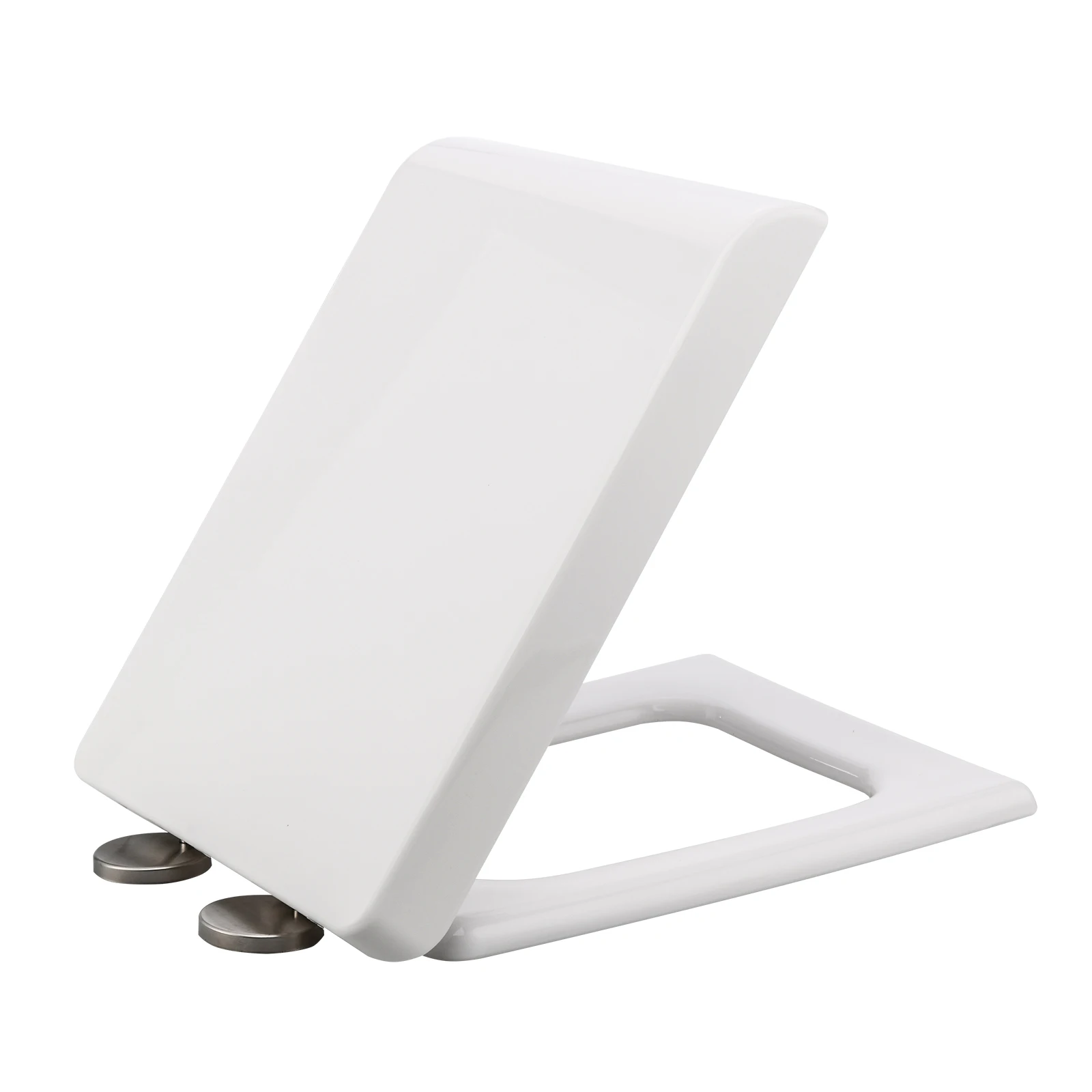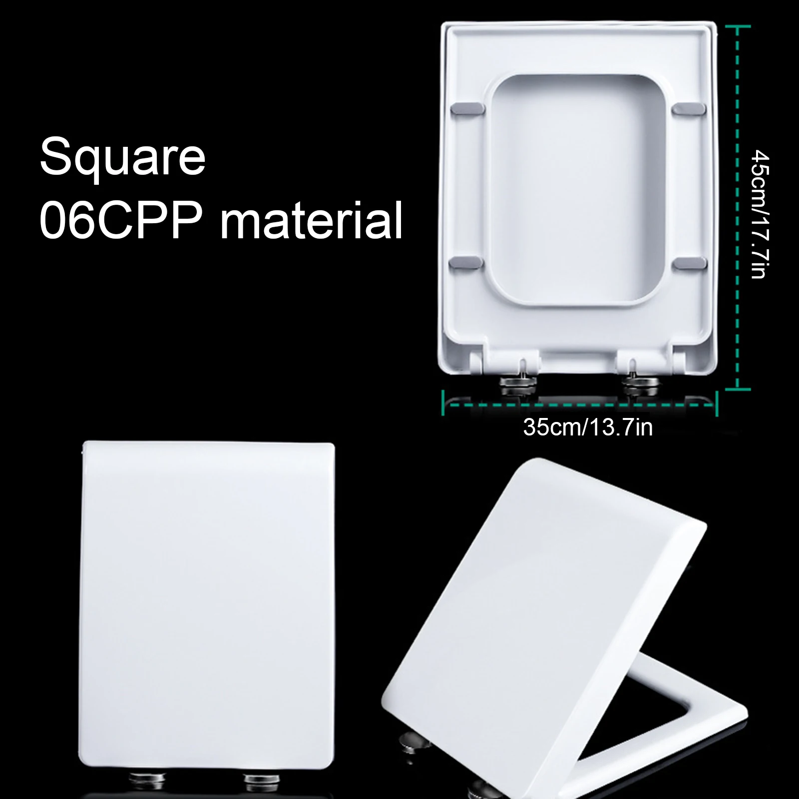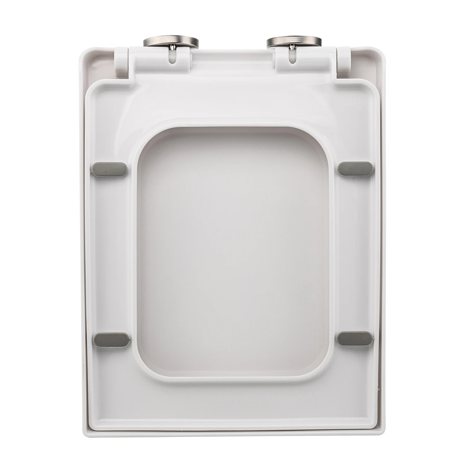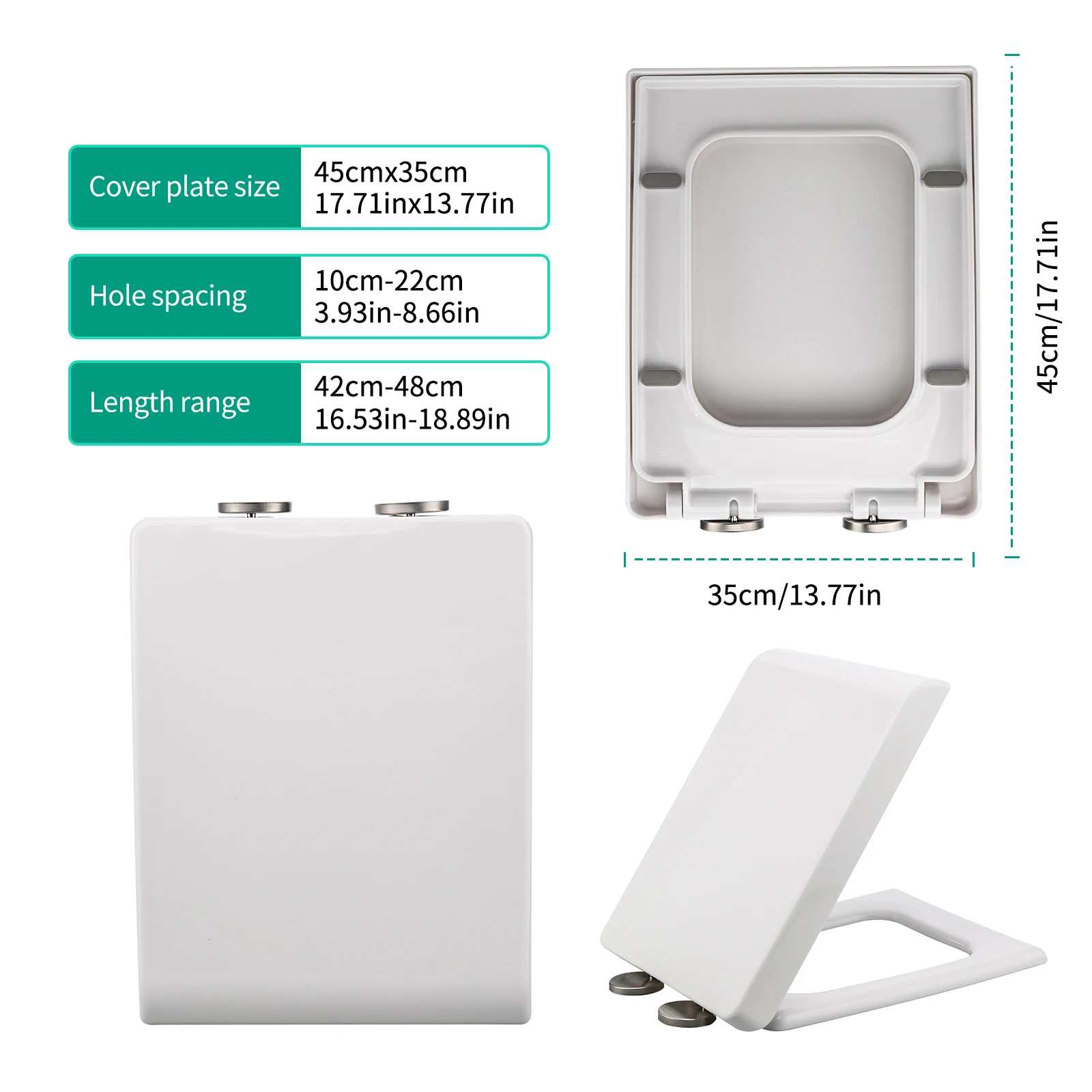 Siège de toilette carré à fermeture douce, antibactérien, hygiénique, couvercle de toilette amovible avec 360 °   Charnière rotative, installation et nettoyage facilesSiège de toilette carré à fermeture douce, antibactérien, hygiénique, couvercle de toilette amovible avec 360 ° Charnière rotative, installation et nettoyage faciles