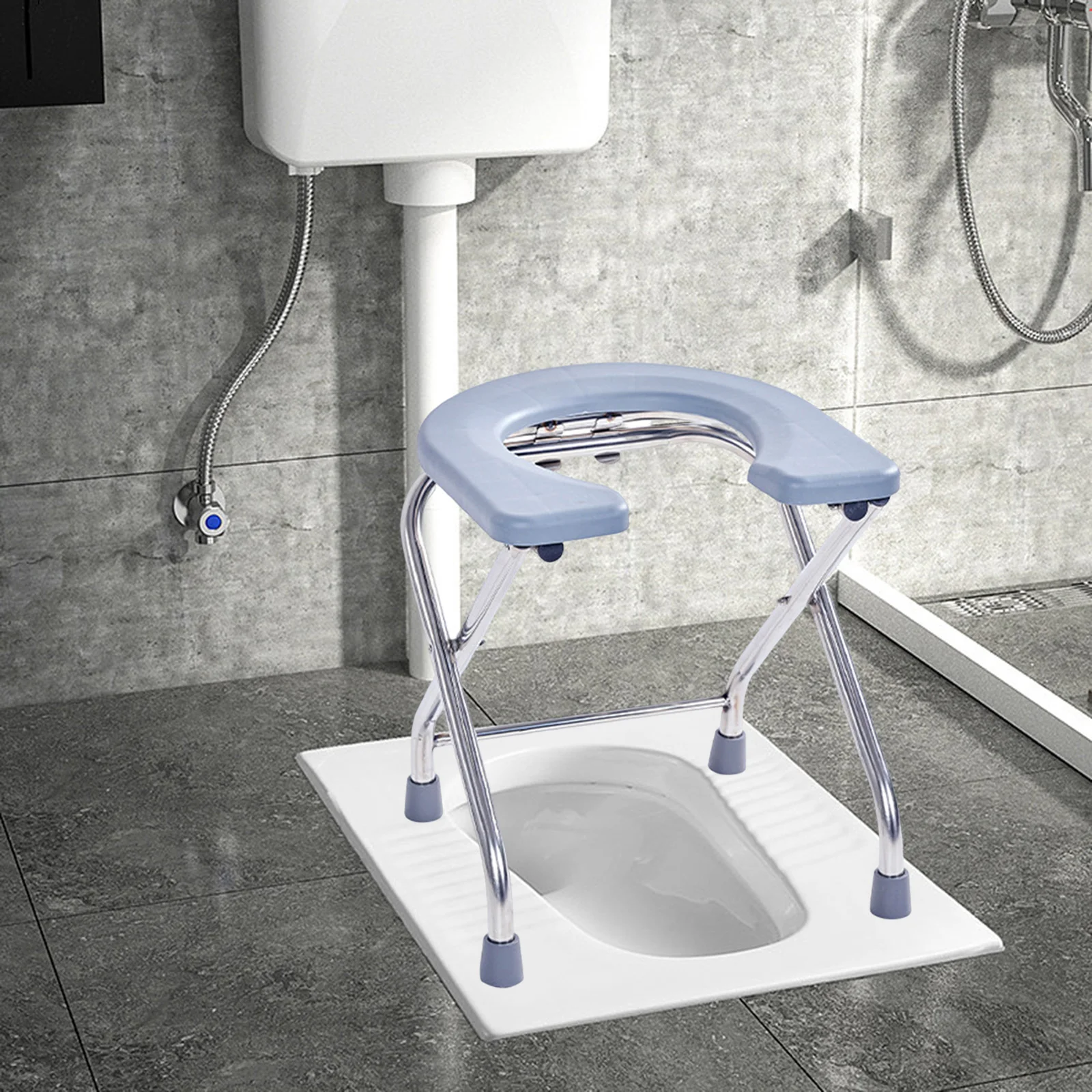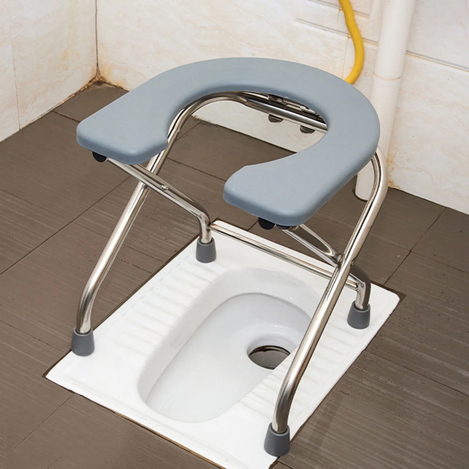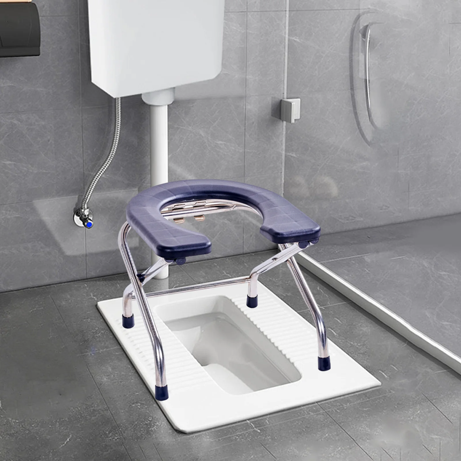 【Matériau durable】 Le tabouret de siège de toilette accroupi est fait d’un tube en acier inoxydable épaissi, d’une structure stable, d’une forte capacité portante, solide et durable.