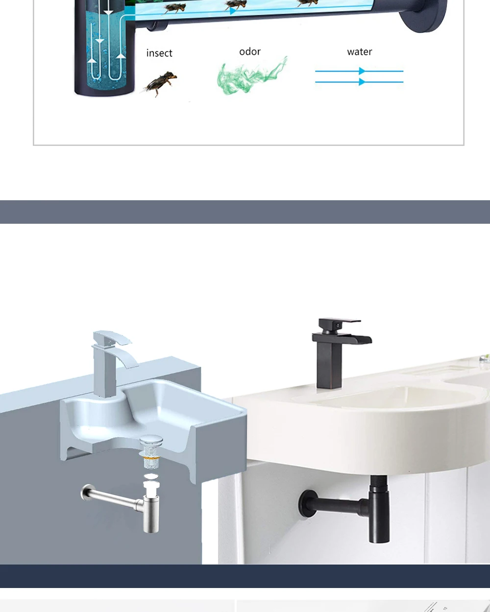 Drain de bouteille de bassin de salle de bains moderne avec filtre pop-up d’évier pour la décoration de rénovation