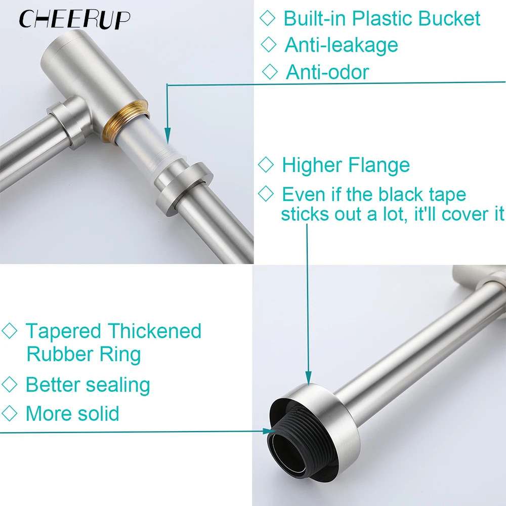 3. Matériau : bouteille de construction en laiton massif robuste, piège en P pour le drain d’évier de navire. Conception ronde moderne, avec finition en or brossé de haute qualité. Aspect belle et généreuse.Conforme aux exigences d’installation de l’Amérique du Nord.