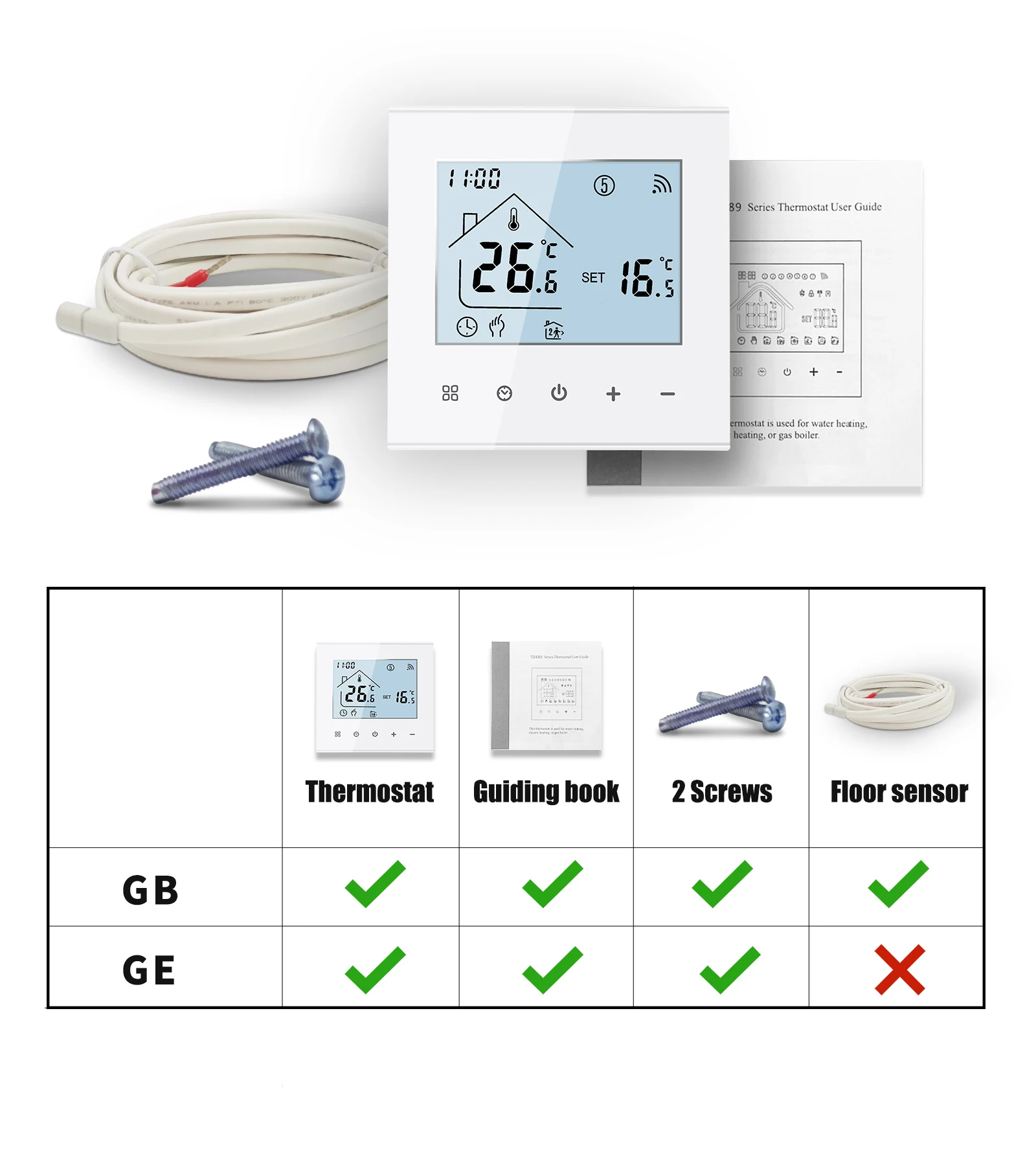 1. GB: Chauffage électrique au sol, 16A (avec capteur interne et capteur externe au sol)