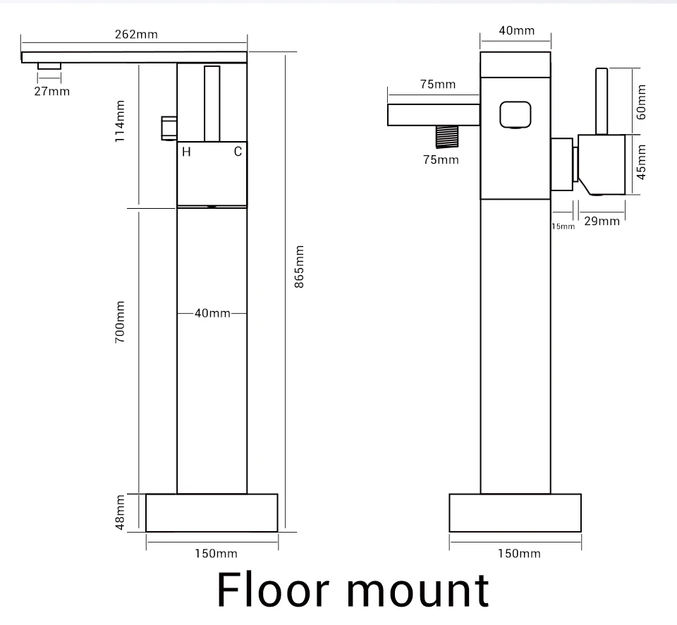 - Type de contrôle de l’eau froide/chaude: Double contrôle à support unique