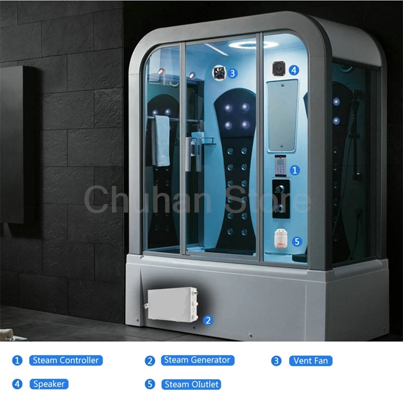 Contrôleur d’affichage numérique :Affichage numérique LED de la température et de l’heure, peut contrôler l’éclairage de la pièce. La douche à vapeur dispose d’un contrôleur d’affichage étanche pour surveiller la température de la vapeur avec précision et en toute sécurité.De plus, vous pouvez également contrôler le temps de chaleur à partir de 95°F – 131°F. Que vous souhaitiez profiter de la chaleur pendant un peu ou une période prolongée, notre générateur vous assurera de tirer le meilleur parti de votre temps libre.