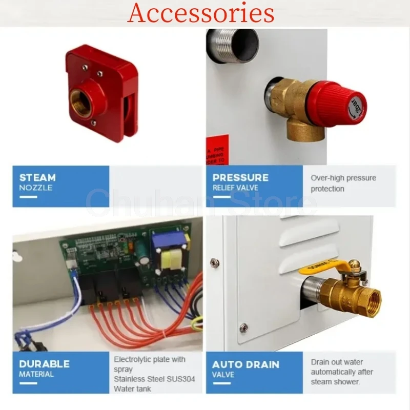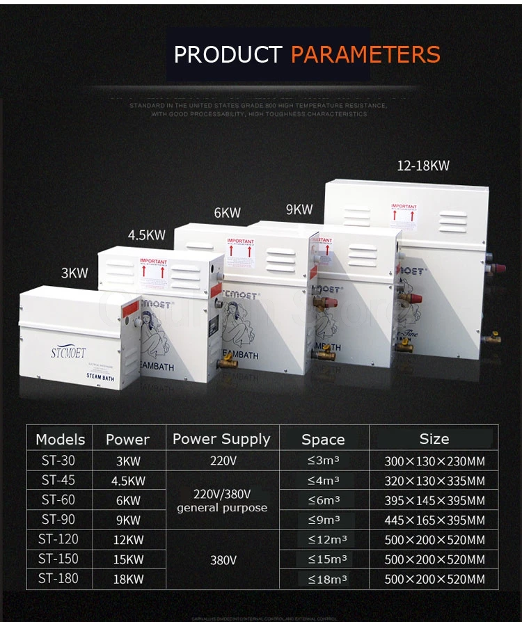 Applications larges :Notre générateur de bain vapeur est conçu spécifiquement pour le bain à remous ; il peut être utilisé pour un usage domestique, les centres de bains, les massages et les hôtels.Les fonctions sont infinies.