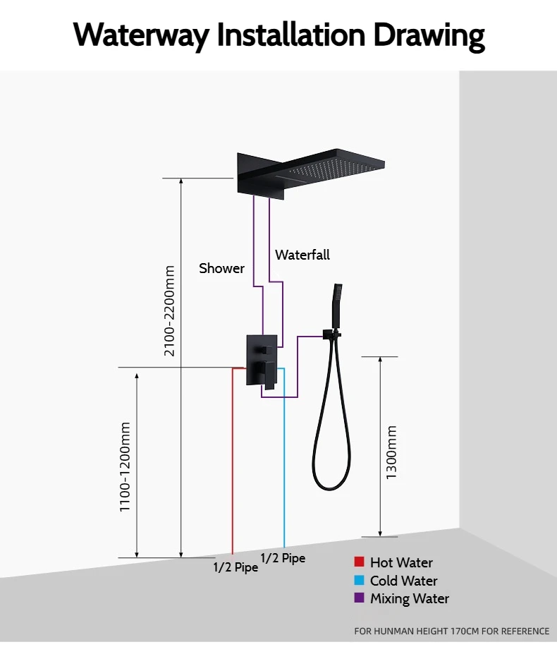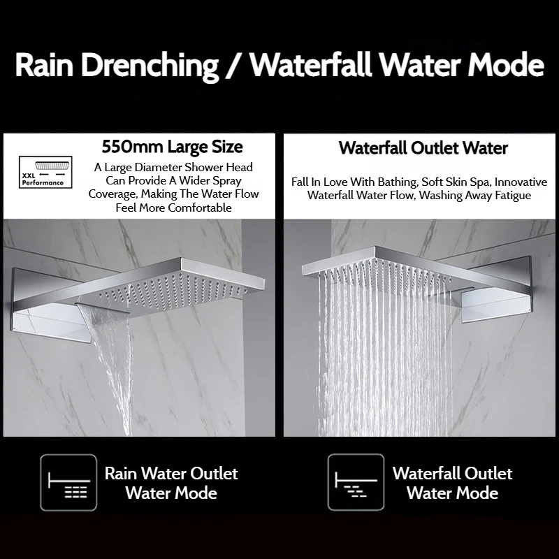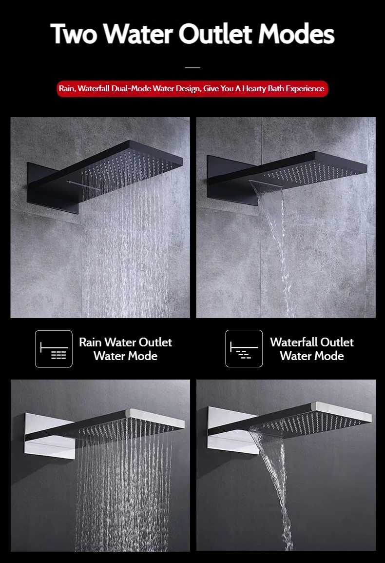 - Water outlet mode: waterfall outlet water mode/rain outlet water mode