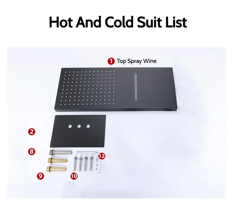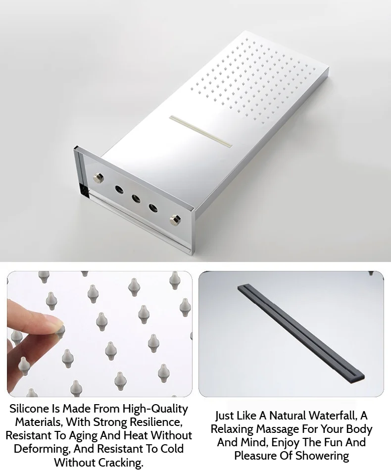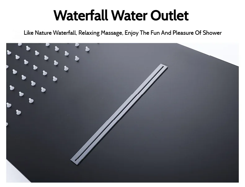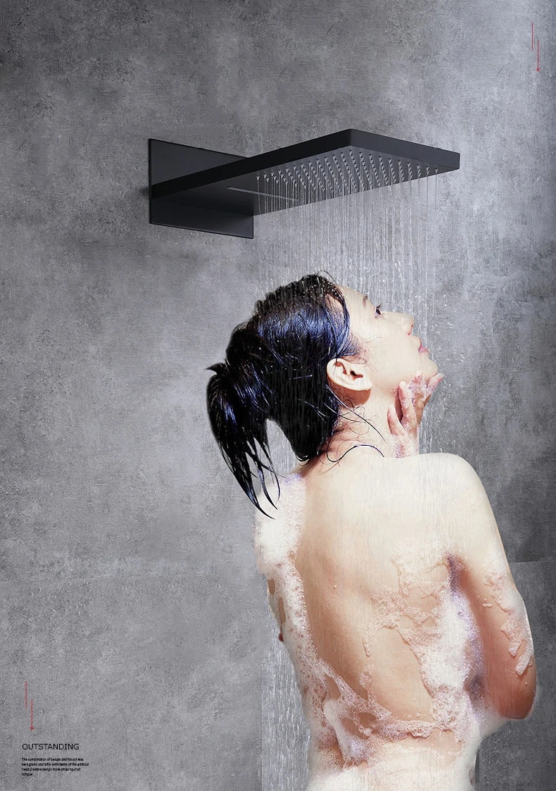 Stenoc noir luxe haute qualité mural en acier inoxydable carré argent grande pluie douche et cascade pomme de douche pulvérisateur