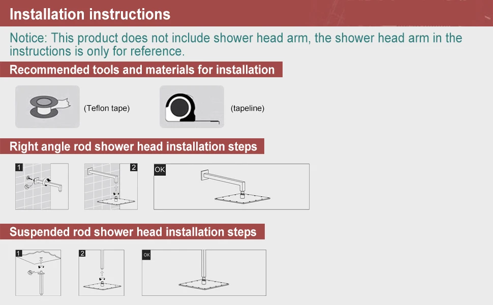 ✿ Caractéristiques de la douche :Pommeau de douche à effet pluie