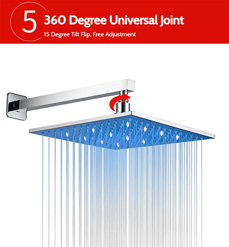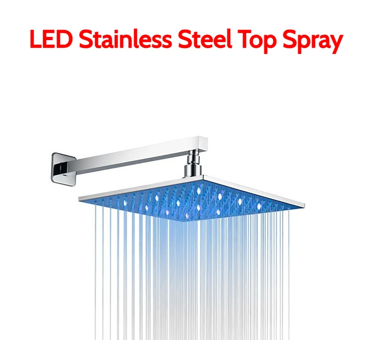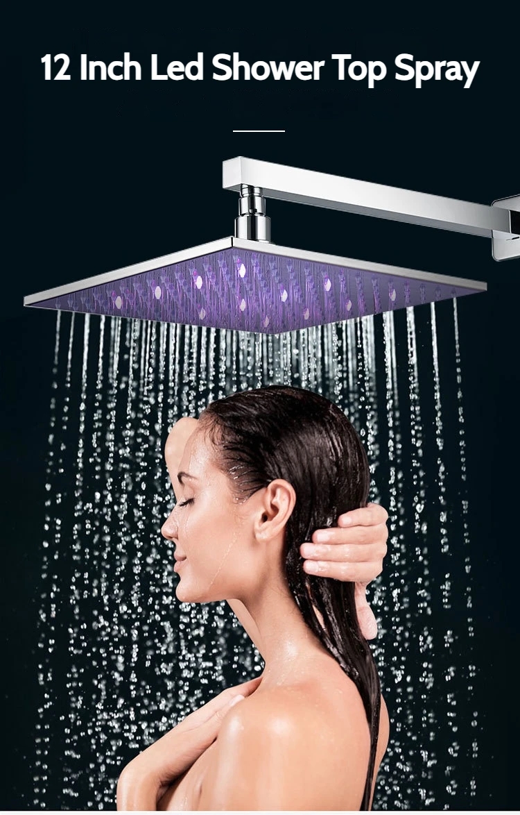 Stenoc 12 pouces pomme de douche fixe lumière Led grande pluie Chrome pomme de douche robinet de salle de bains en acier inoxydable carré pulvérisateur robinet