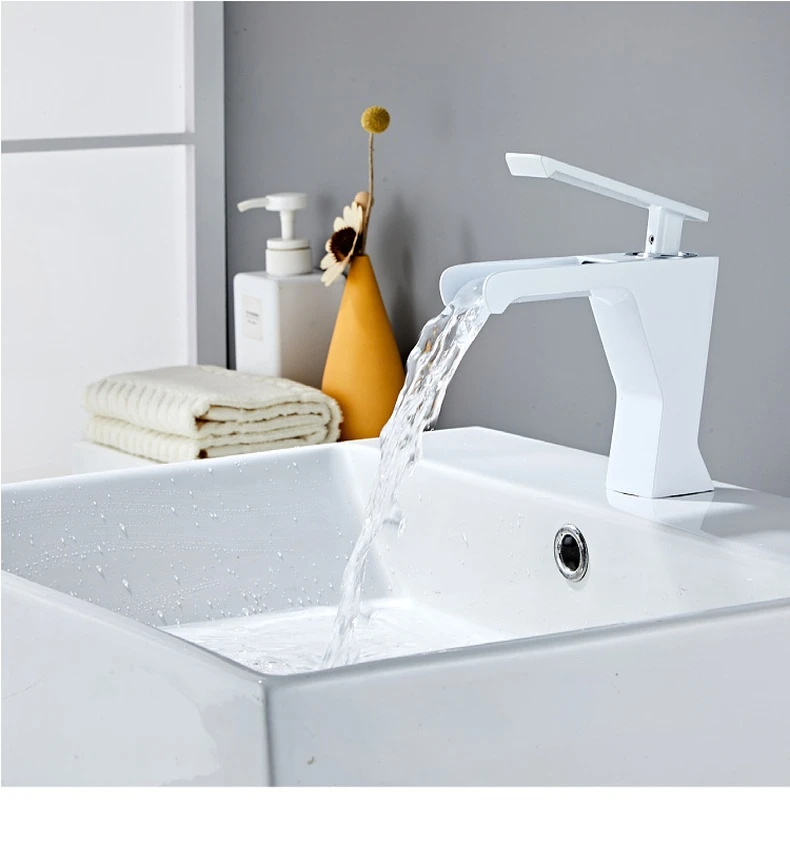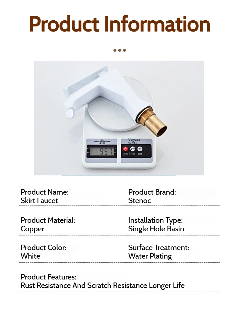 Stenoc blanc laiton moderne cascade bassin évier robinet pont montage robinet mitigeur eau froide chaude mélangeur salle de bain lavabo grue