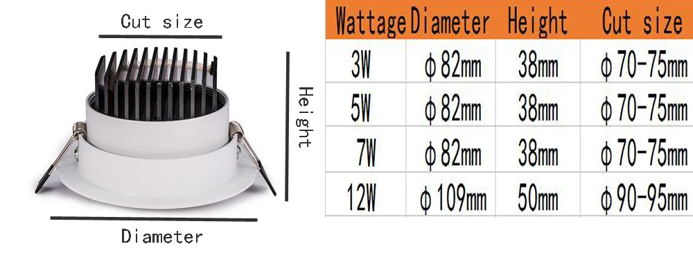 Puissance : 3W 5W 7W 12W