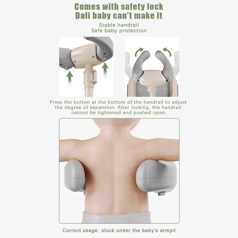 2, SYSTÈME DE HAUTEUR RÉGLABLE Avec un système de levage réglable, notre support de baby shower s’adaptera à la croissance de votre enfant.Le mécanisme de réglage à plusieurs niveaux s’adresse à différents âges et assure un confort optimal pendant l’heure du bain.La structure flexible permet des changements de hauteur sans effort et une durée de vie prolongée du produit.