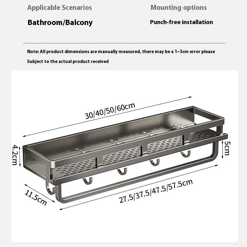 -Ce support de stockage est fabriqué en alliage d’aluminium de qualité avec une surface résistante à la corrosion.Il convient aux environnements humides tels que la salle de bain (même sous la douche) et la cuisine.