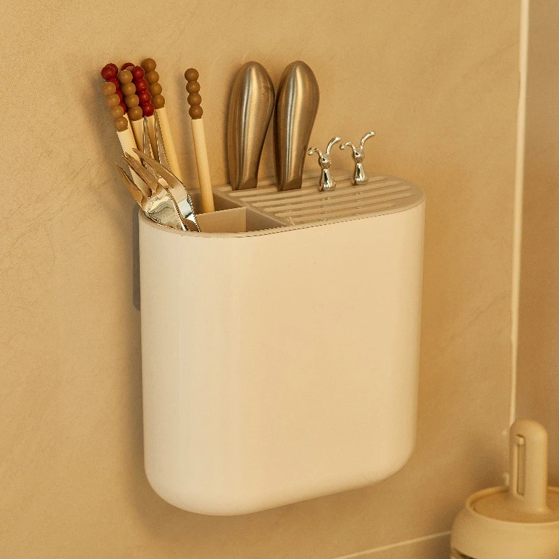 1. Conception intégrée : ce porte-baguettes mural de style crème a un design unique qui peut stocker des baguettes et des couteaux accrochés. Il comprend plusieurs fonctions dans un panier à baguettes, pour obtenir un rangement soigné d’articles et un espace de cuisine plus bien rangé et beau.